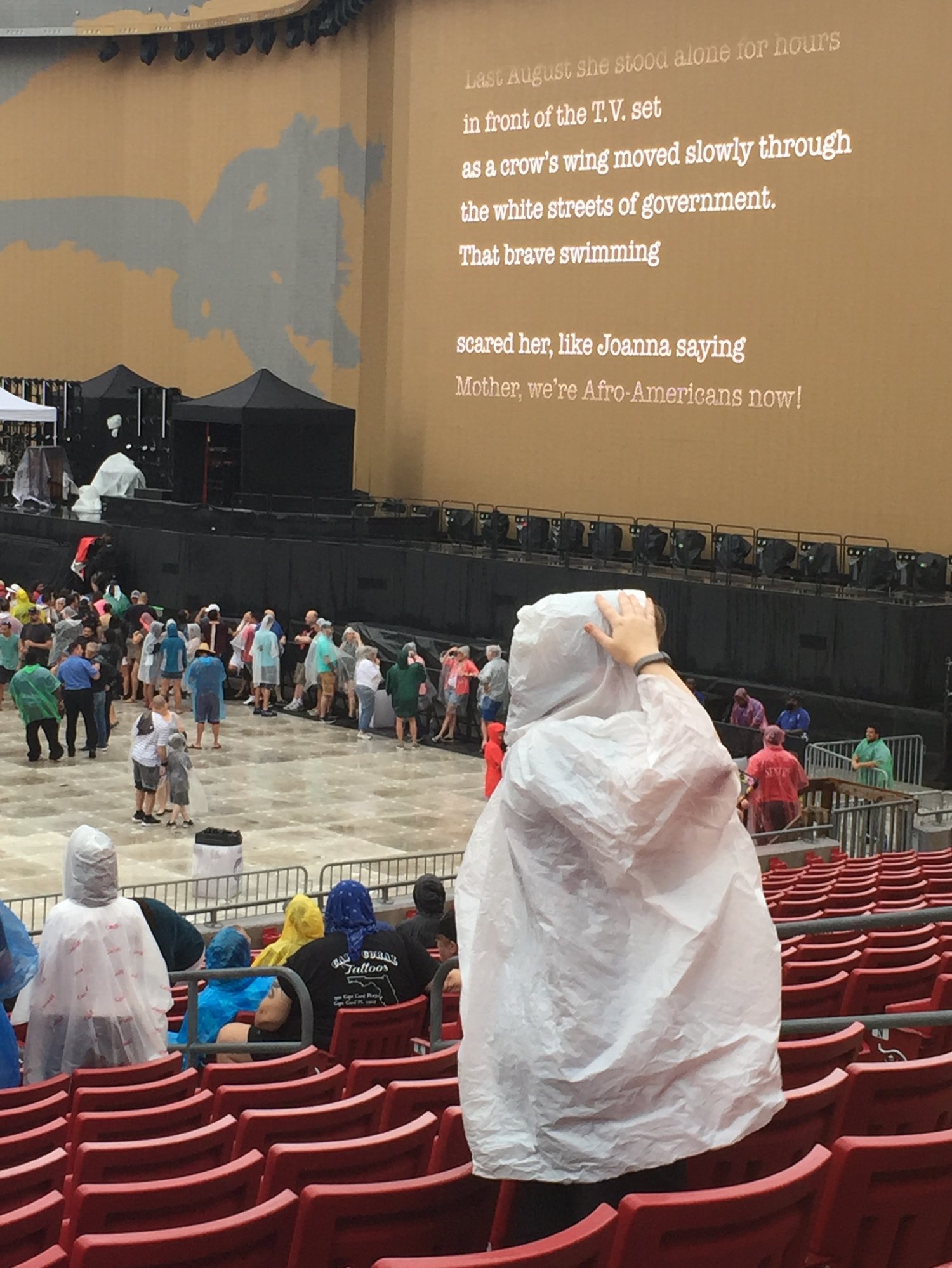 Not totally sure that this event could be seen with my camera expertise. It is a huge banner of one of the subjects (a young syrian woman) which shared her thoughts about what the USA means to the rest of the world in the video montage. It was passed throughout the stadium.