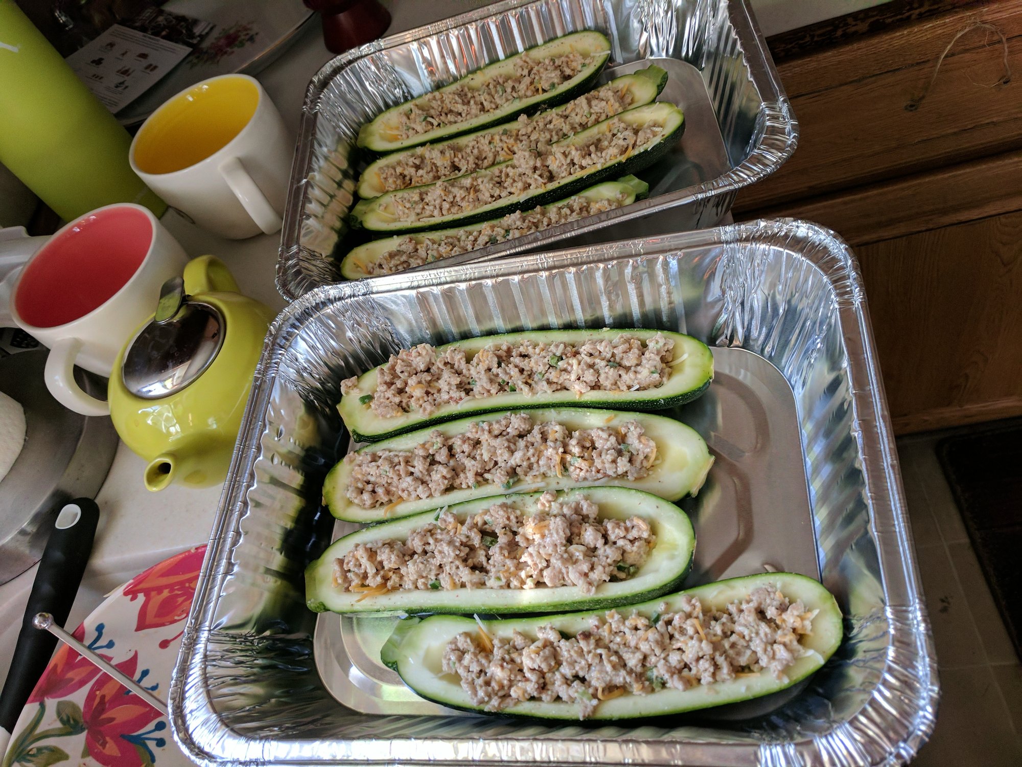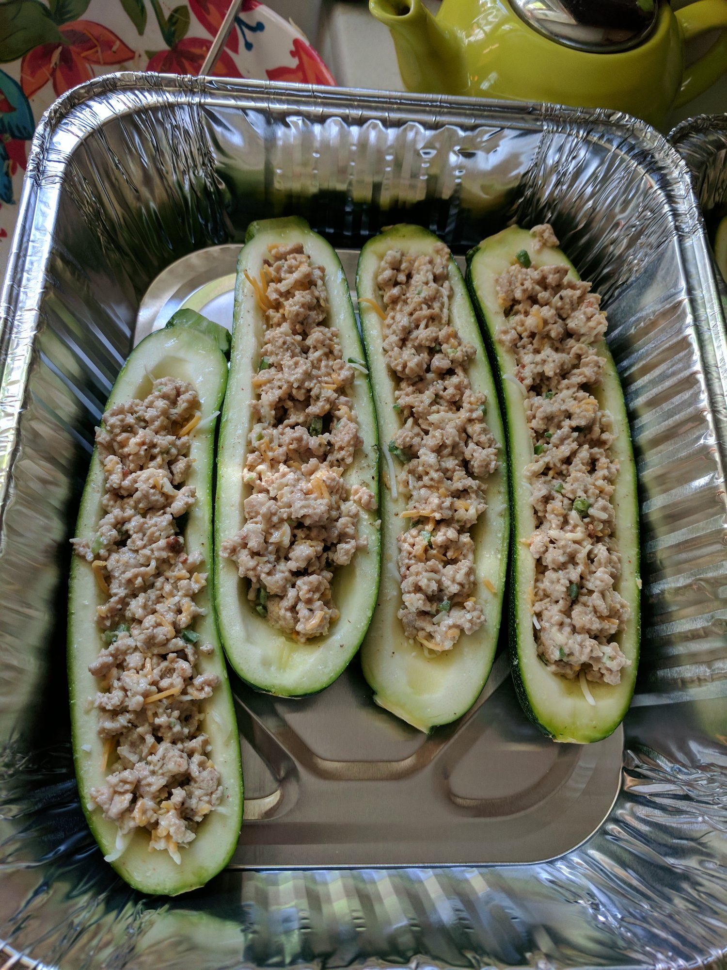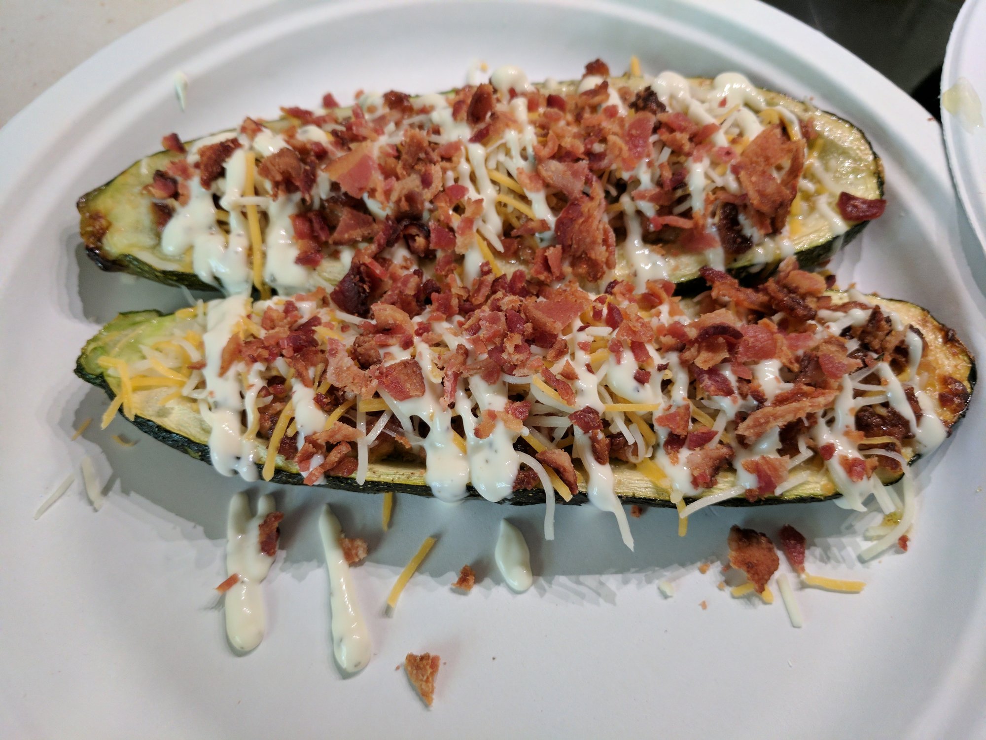 @Eggdicted_Dawgfan hollow out zucchinis, cook 1lb of ground chicken, mixed in salt pepper serrano peppers and dry ranch seasoning. Let cool, then add sirachi and cheese. Stuff zucchinis 425 in direct heat for 40mins. Top with cheese, bacon, advacados and Marie's ranch parmesanDoylestown - Pennsylvania