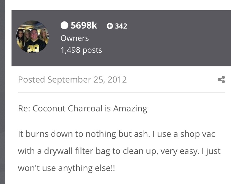 Anyone's charcoal not burn down to ash that can be vacuumed up?THANK YOU FOR YOUR ATTENTION TO THIS MATTER
