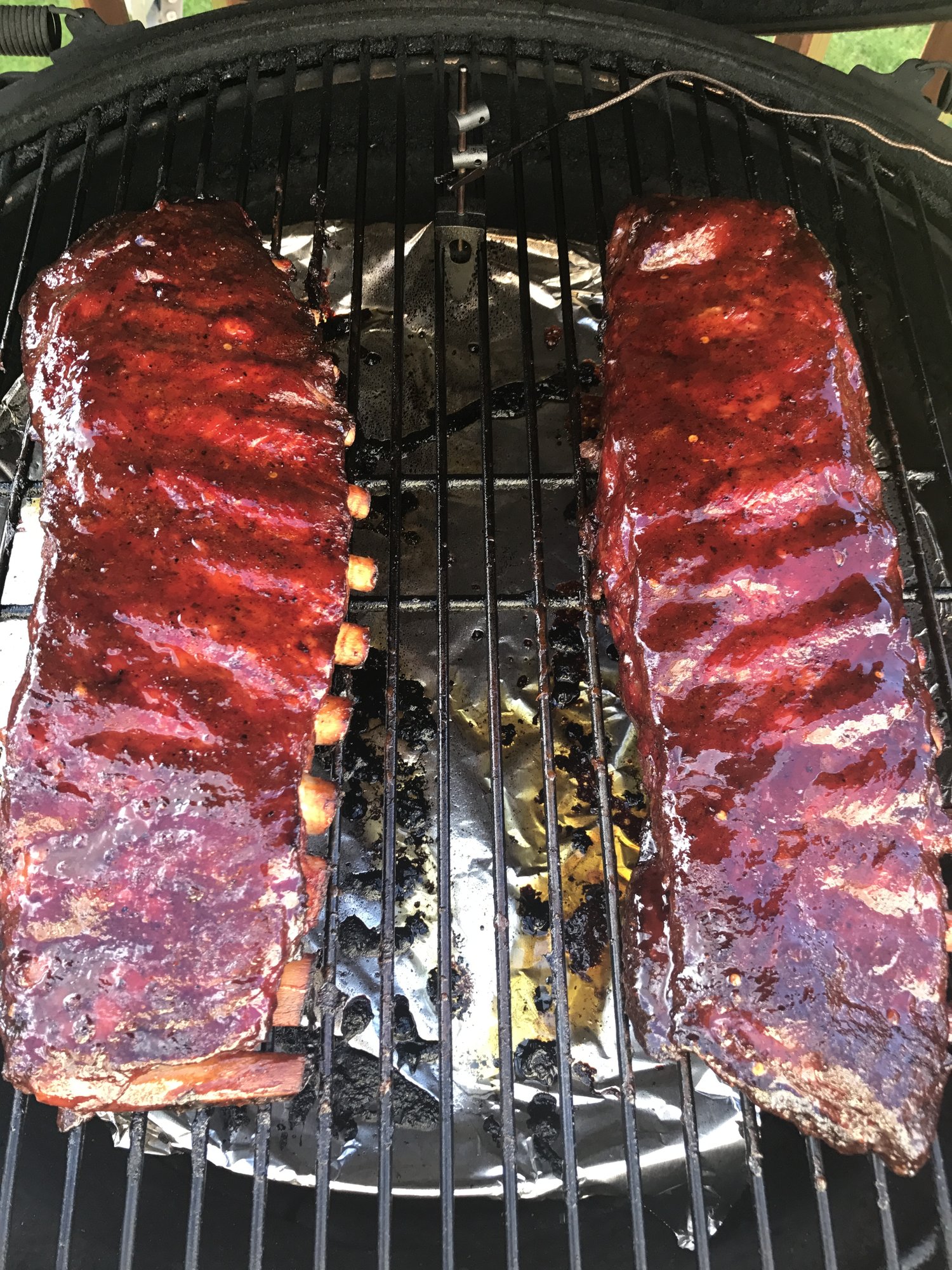 Smoked some spare ribs for 5 1/2 hrs at 275. Blues Hog Original and Tennessee Red.