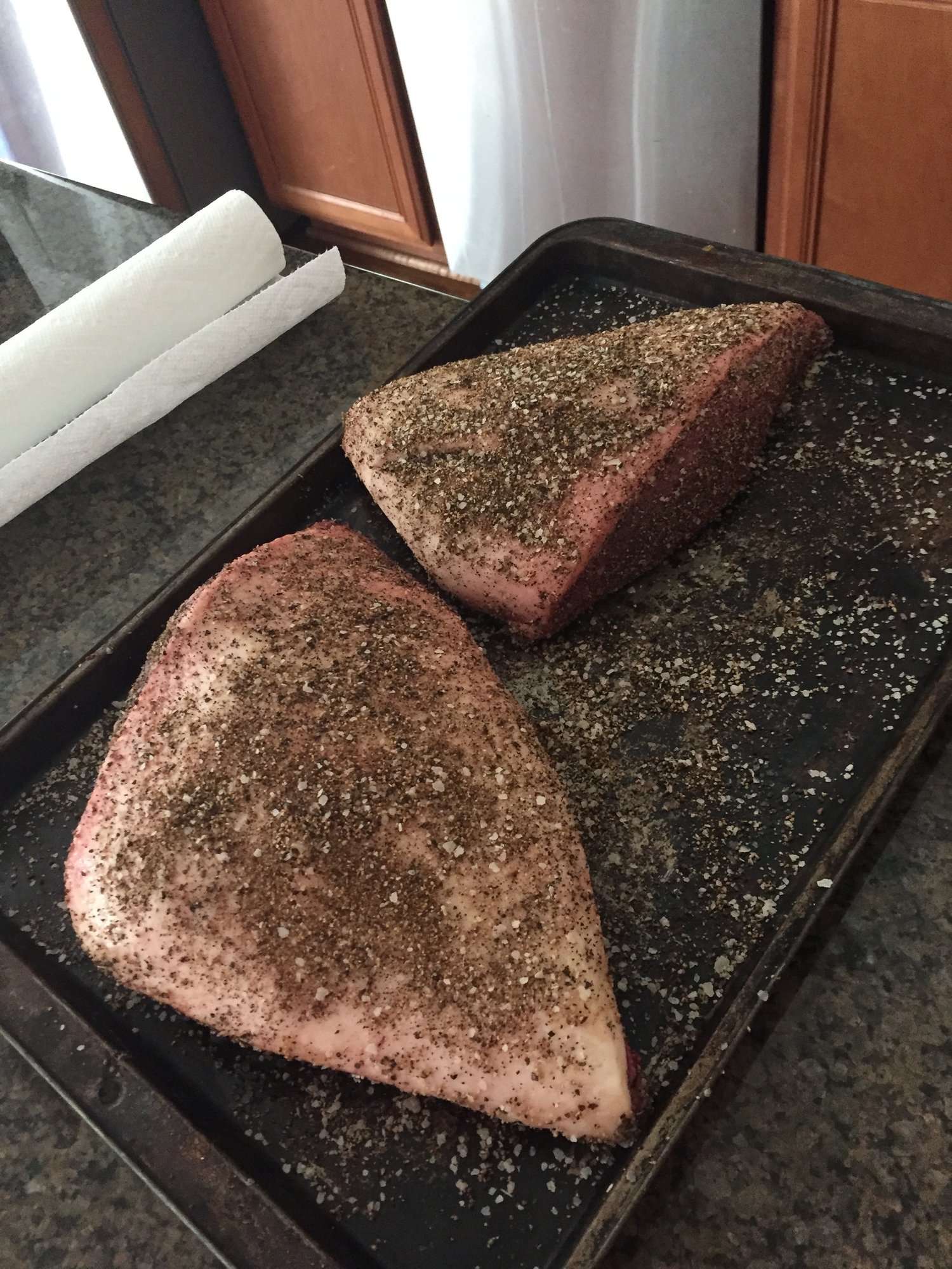 I got two going on today. My plan is reverse sear. Then one of them onto the cutting board with a little board sauce of garlic, parsley, rosemary and EVOO.