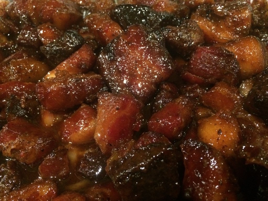Did up some pork belly burnt ends last week, using the Malcolm Reed technique.  Absolutely spectacular.  Just cubed up about six pounds of pork belly (no skin, dry-brined overnight), covered every inch in my homemade rub (nothing fancy just turbinado and paprika with onion powder, garlic powder, salt, pepper, cayenne and a little celery seed) and smoked over apple/hickory at 250 for a couple of hours, then into a covered foil pan with butter and honey for a couple of hours, then glazed for ten minutes with barbecue sauce (bone sucking) mixed with some crabapple jelly and apple juice.