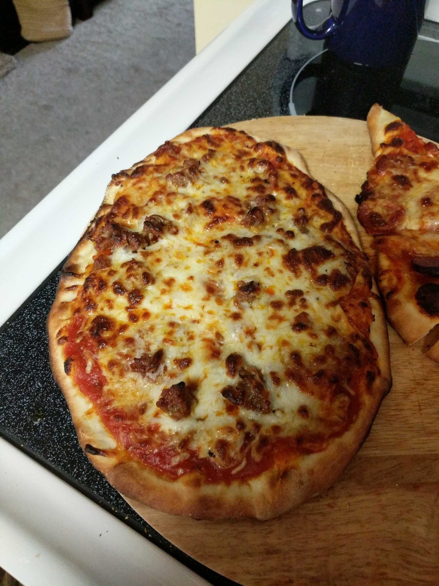 When we just want a quick pizza lunch, we use burrito tortillas. Two with cheese between them, then the regular stuff on top. It's easy, fast and better than a lot of pizza's we've eaten in restaurants. I made this video about a year ago to show how fast and easy it is.