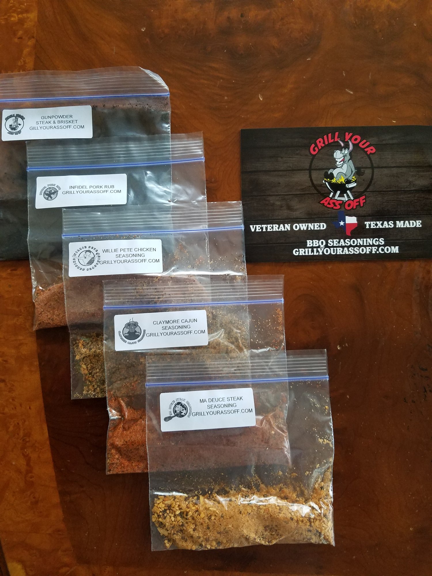 Happy Friday everyone, I got a sampler package from Grill your ass off for the 4th of July and I was just wondering if anyone has used this product and what their results were. Theyre a veteran-owned company based out of Houston Texas. I will definitely post a review on here as soon as I use one of their rubs.