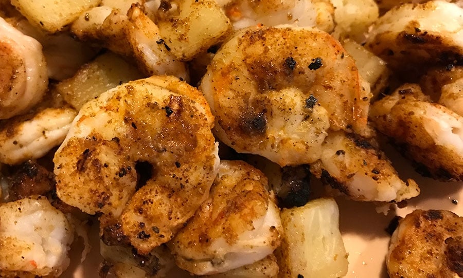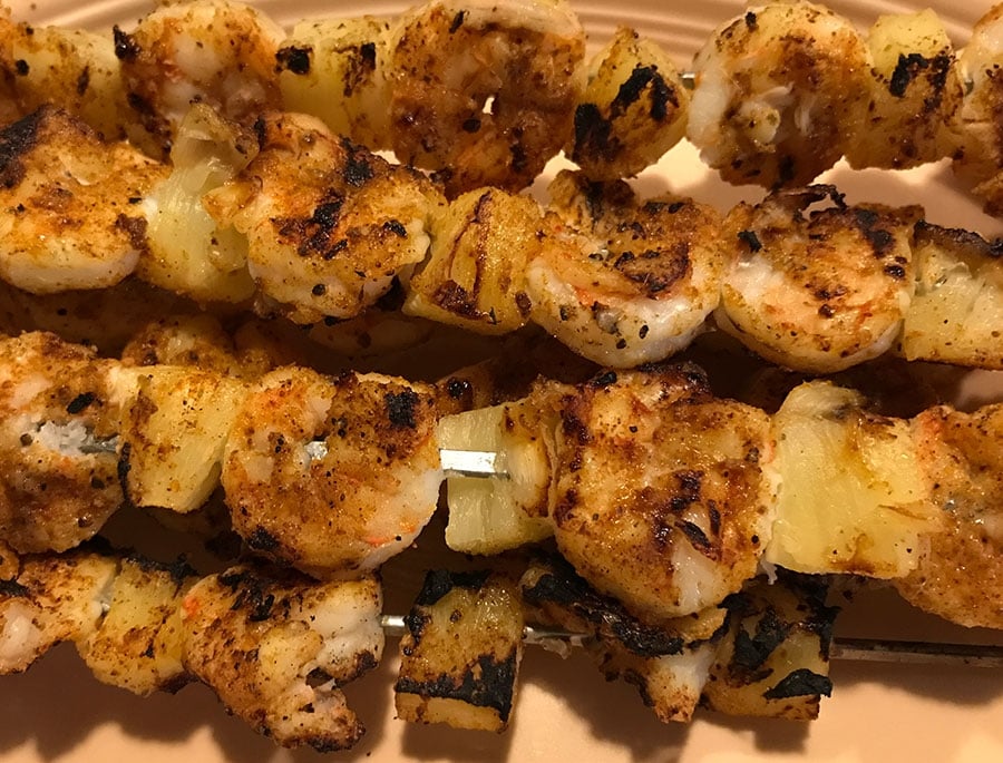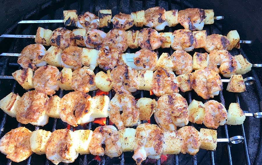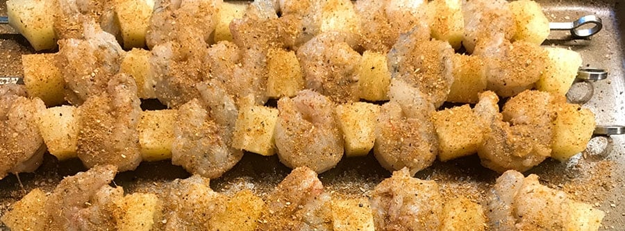 Brothers and sisters, read on for a tale of woe:  I really wanted some grilled shrimp tonight, planned to do a super simple dish from an Eggfest collection: shrimp marinated briefly in pineapple juice, then skewered with pineapple chunks, all sprinkled heavily with DP Jamaican Firewalk.  Easy peasy, what could possibly go wrong?