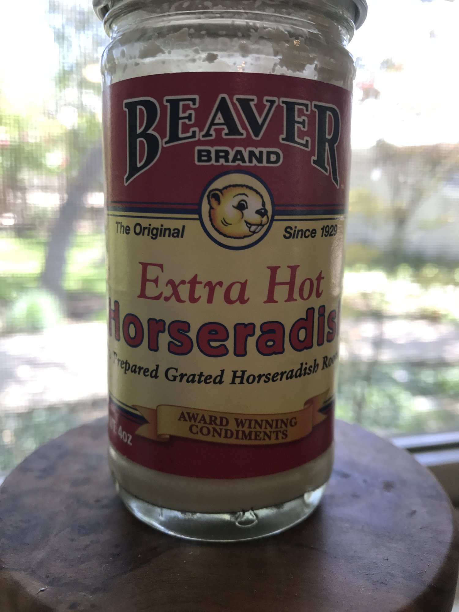Love horseradish... make my own cocktail sauce.. horseradish. Worcestershire, lemon juice and ketchup... now I want some!!Charlotte, NC - Large BGE 2014, Maverick ET 733, Thermopen, Nest, Platesetter, Woo2 and Extender w/Grid, Kick Ash Basket, Pizza Stone, SS Smokeware Cap, Blackstone 36"