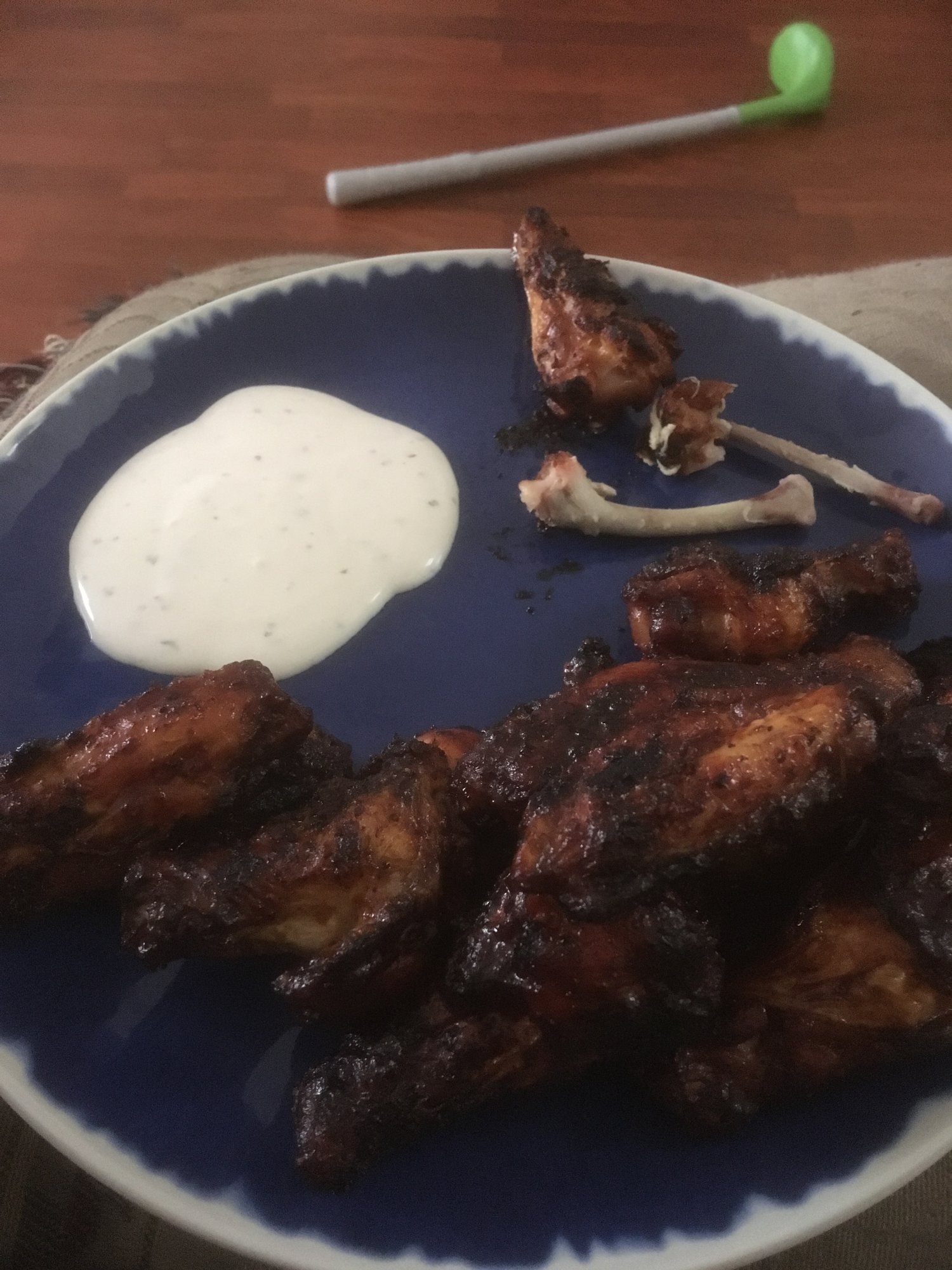 After you dropped your wings in the freshly cut lawn, you are still going to eat them?