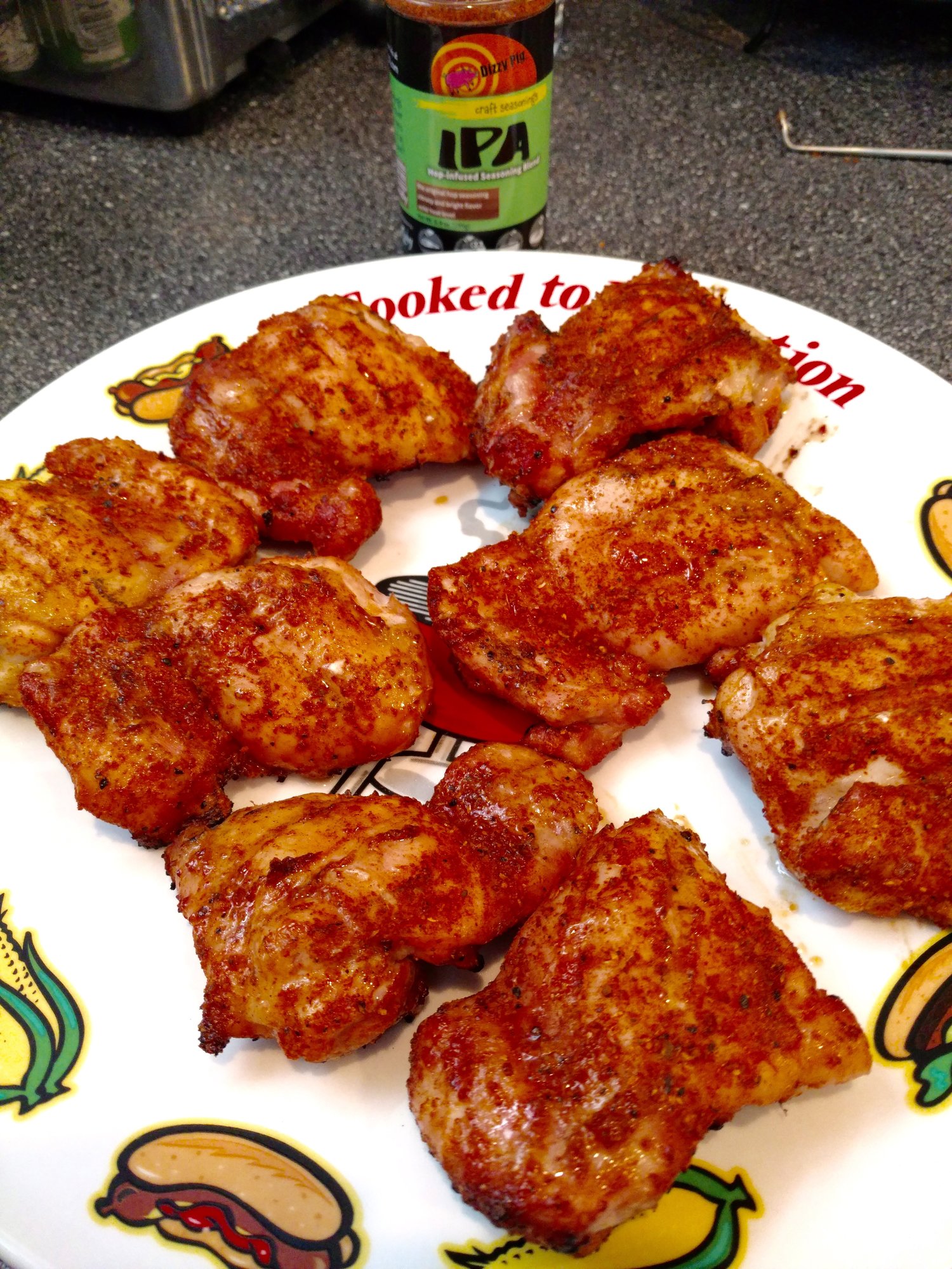 Got some thighs on the XL covered in some Dizzy Pig IPA.