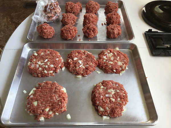 Smash burgers in top tray, regular on bottom. I don't weight them, not trying to be perfect. That bag at the top smash burger tray, is the fat the Kitchenaid grinder does not like.