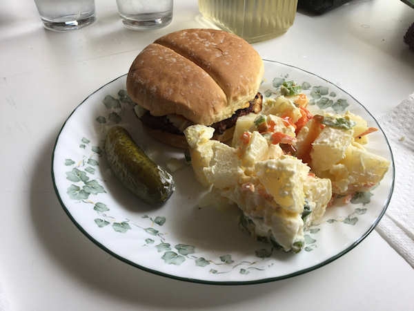 My wife's plate, I don't care for dill pickles. made some potato salad for a side.