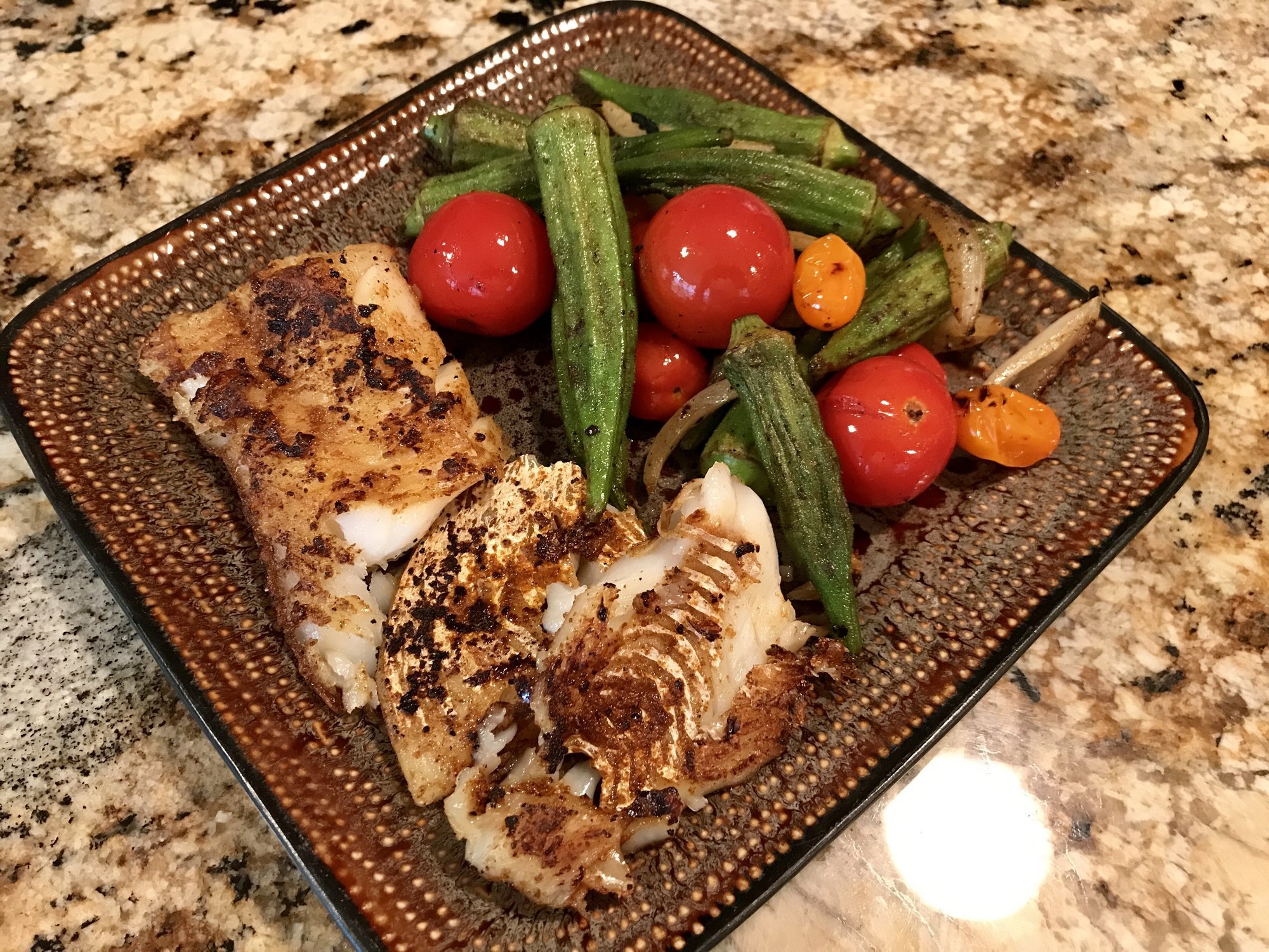 Cod n Grilled Okra Salad