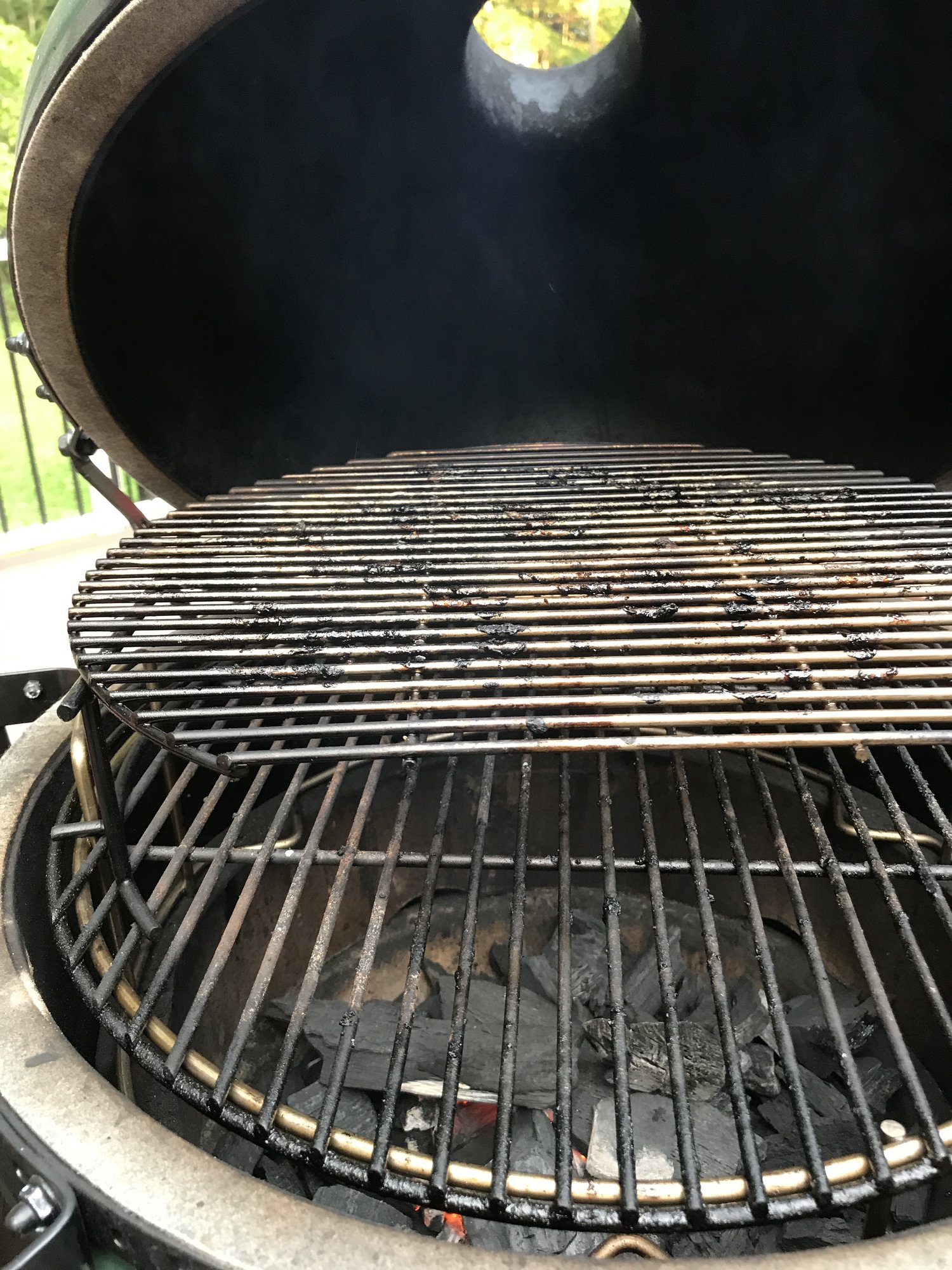 I see that you have the newer band design. A design tweak for the sliding d grid may be in order. I wonder if cgs has looked at this. I have the previous band design and it won't slide off.JohnEggGio said:I just set mine up to cook chicken up