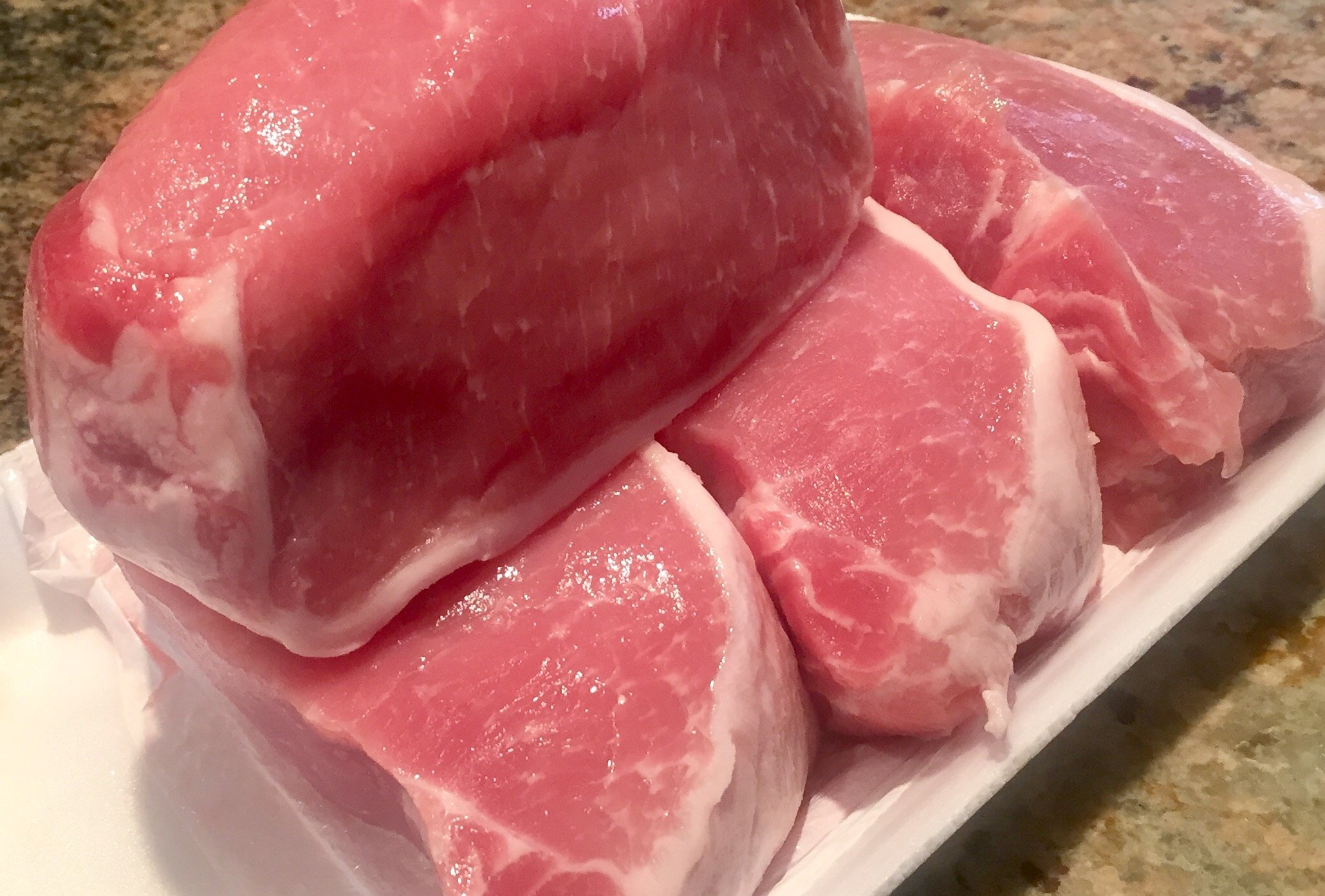 Boneless, brined, glazed at the end with awesome raspberry peach chipotle (thx to @SciAggie for adding it to the exchange -- Fredericksburg Farms is a new "go to"!).
