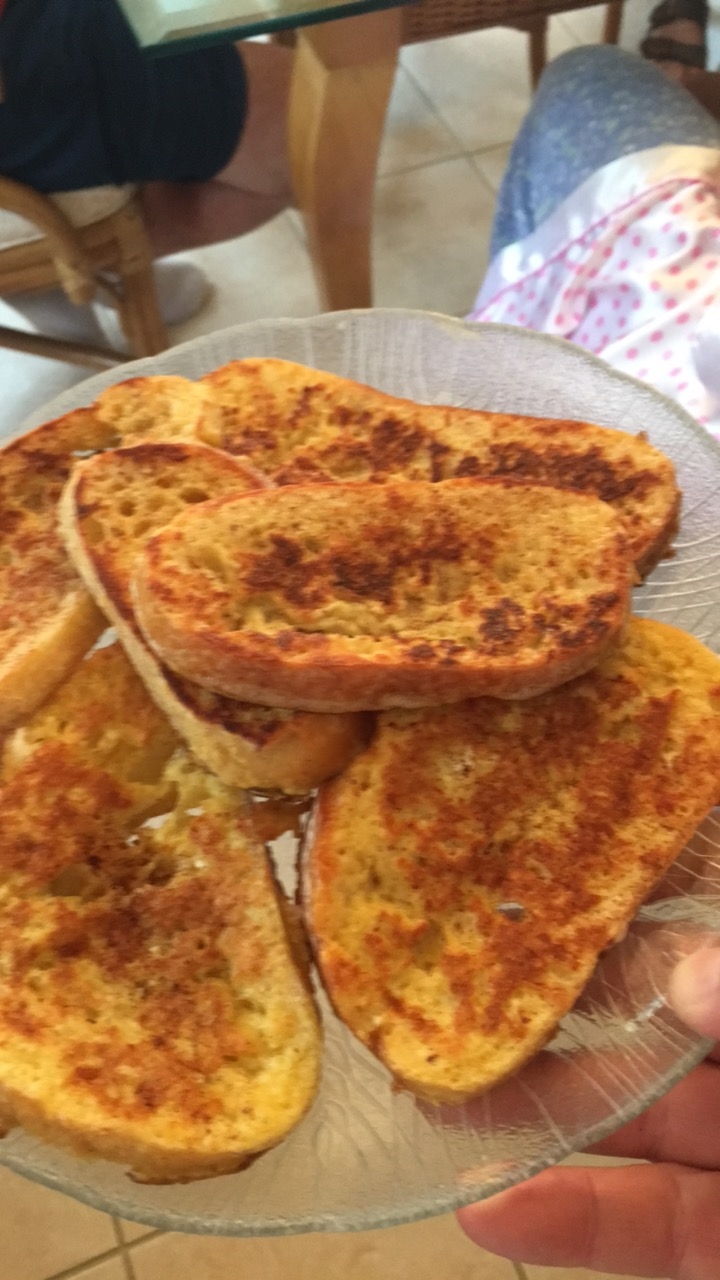What a day been cooking most of the day, French toast, blueberry:peach cobbler, sausage, beef short ribs, steak tips