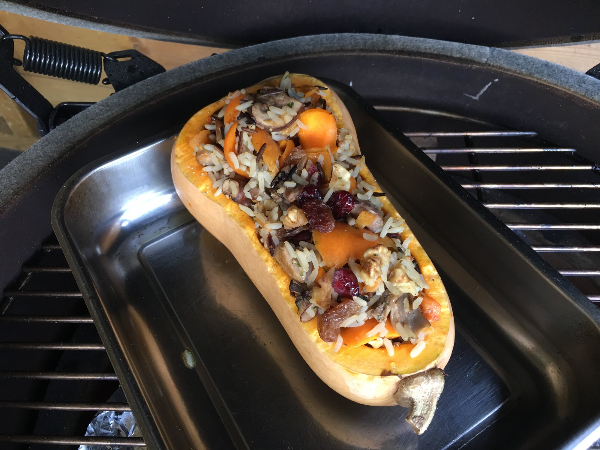 Nice! What's the stuffing? I'm pretty sure I see cranberries and walnuts with the rice. What other goodies?