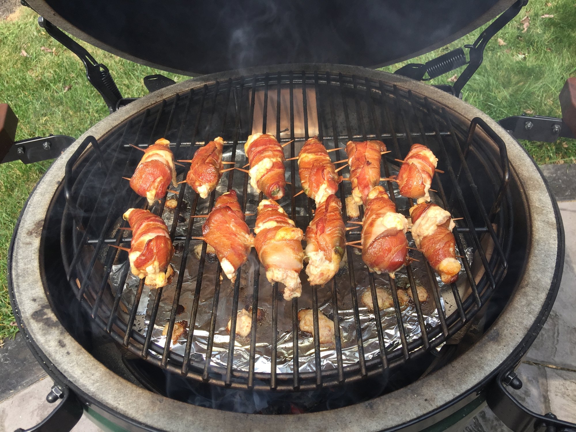 350F indirect 30 mins lessons. Probably should have gone 40 to 50 min. To crisp up the bacon just a little more. The jalapeños were still a little crunchy. We like the jalapeños a little softer. Any suggestions? But they still tasted good.