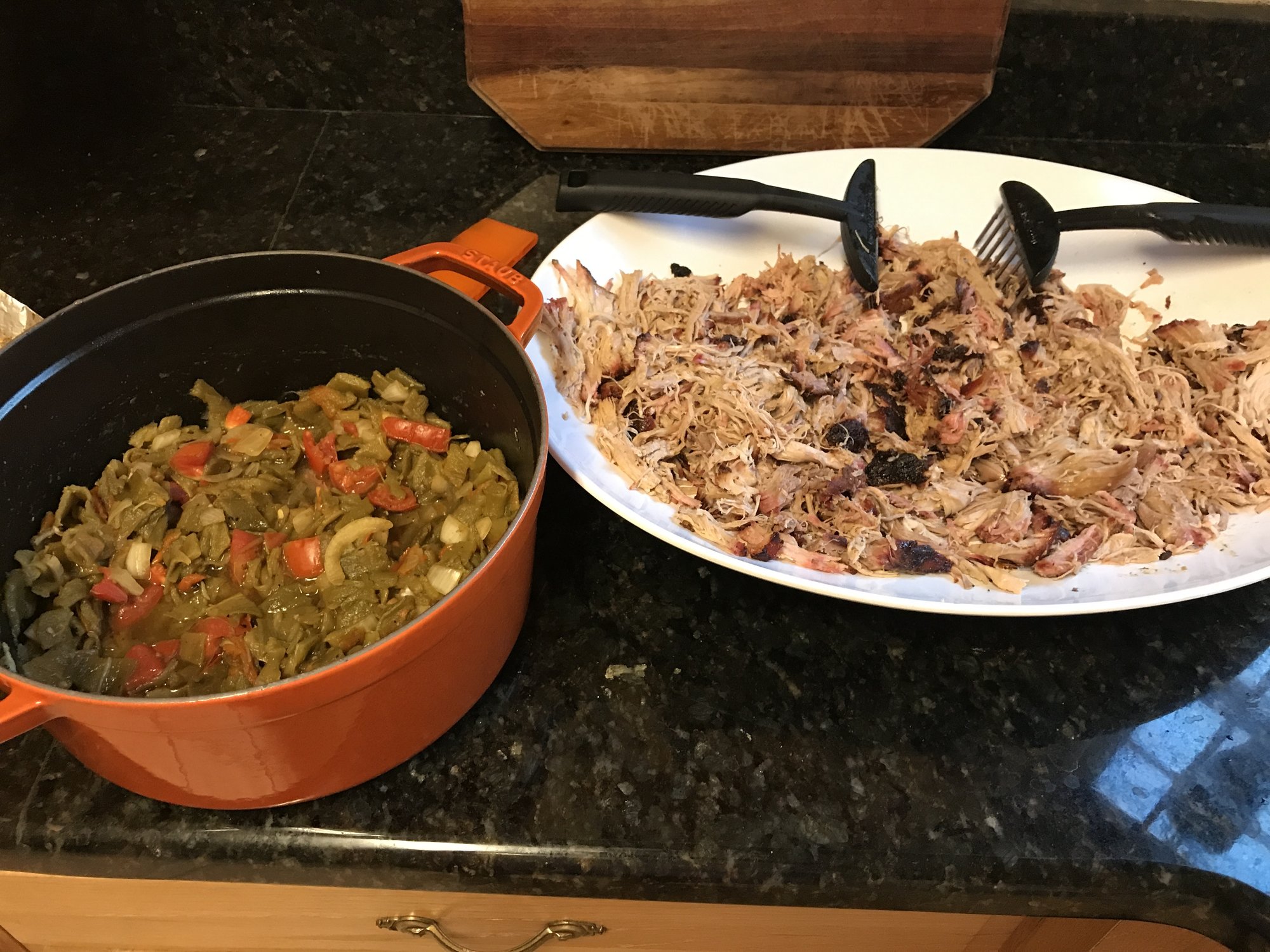 Smoked a 5# butt, shredded it, mixed it up with some smoked green chiles and wrapped it all up in a tortilla. yum.