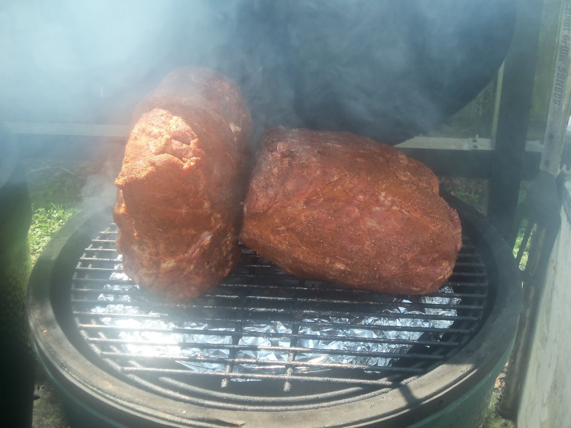 just put two on, total weight just over 19# out of the package...trimmed maybe a pound of fat off...the one on the left has Dizzy Pig Cow Lick & the other has DP Mole'...starting at about 200 & will let temp rise slowly to finish around 6pm...otherwise ready to take on Irma...loose items put away & generator ready if needed, plus have 60+ pounds of lump ready!