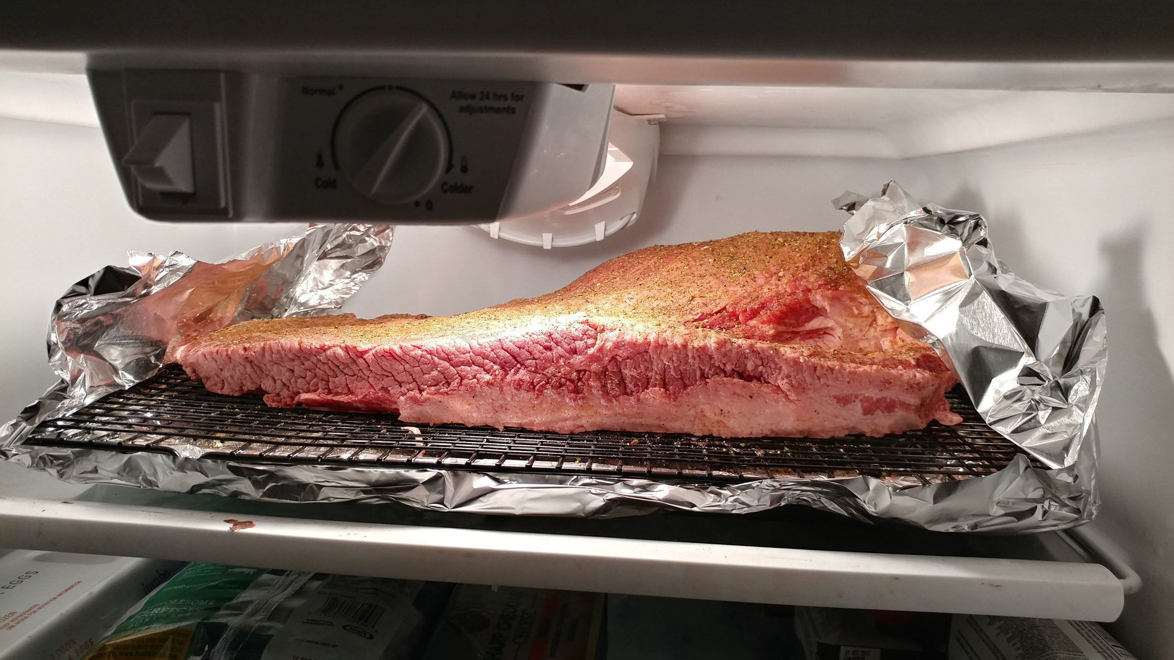 • I do not apply a salty rub the night before on a brisket. The salt draws out the water as it sits and you need that water for the cook.