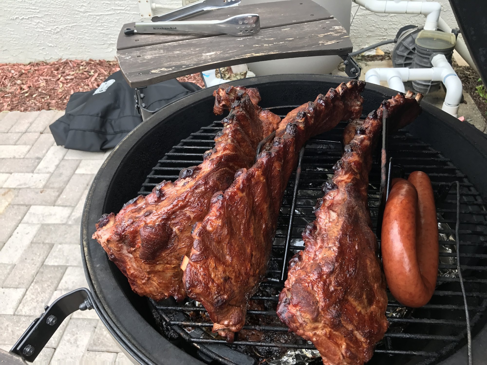 Just a newbie here. Got my LBGE a couple weeks ago for my birthday and have had fun so far. Did ribs the first time with a cast iron to deflect the heat (didn't have the plate setter yet) and the came out great in about 4 hours no foil. I'm going back for a bigger rack this time and now I have the plate setter. Thanks for all the tips everyone!