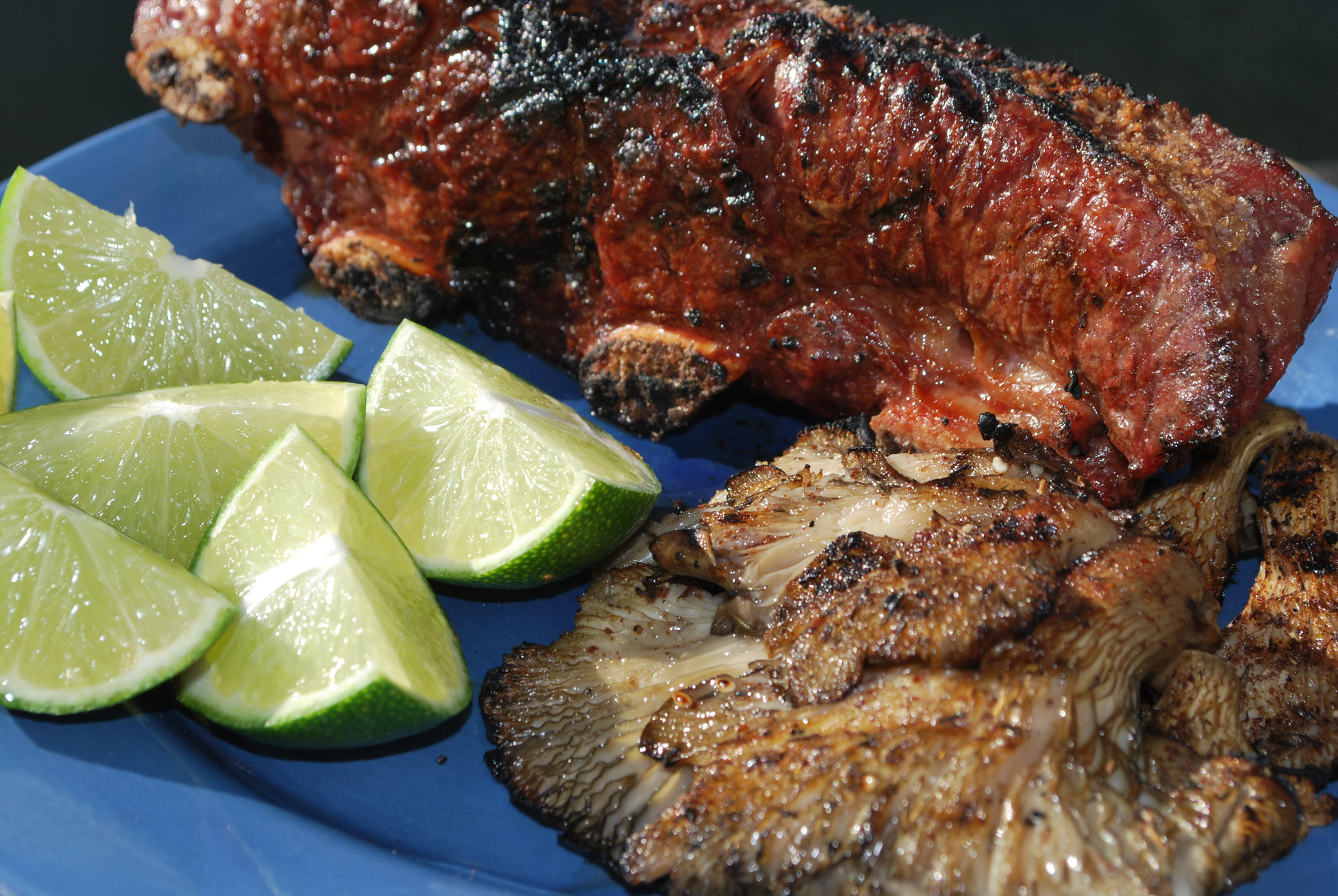 not many have grilled oyster mushrooms, oil them, dust with rub, grill hot til some crisp developes. extremely simple, leave them whole for the cook