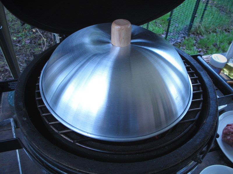 Using a "cloche" ... aka wok cover ... to melt the cheese: