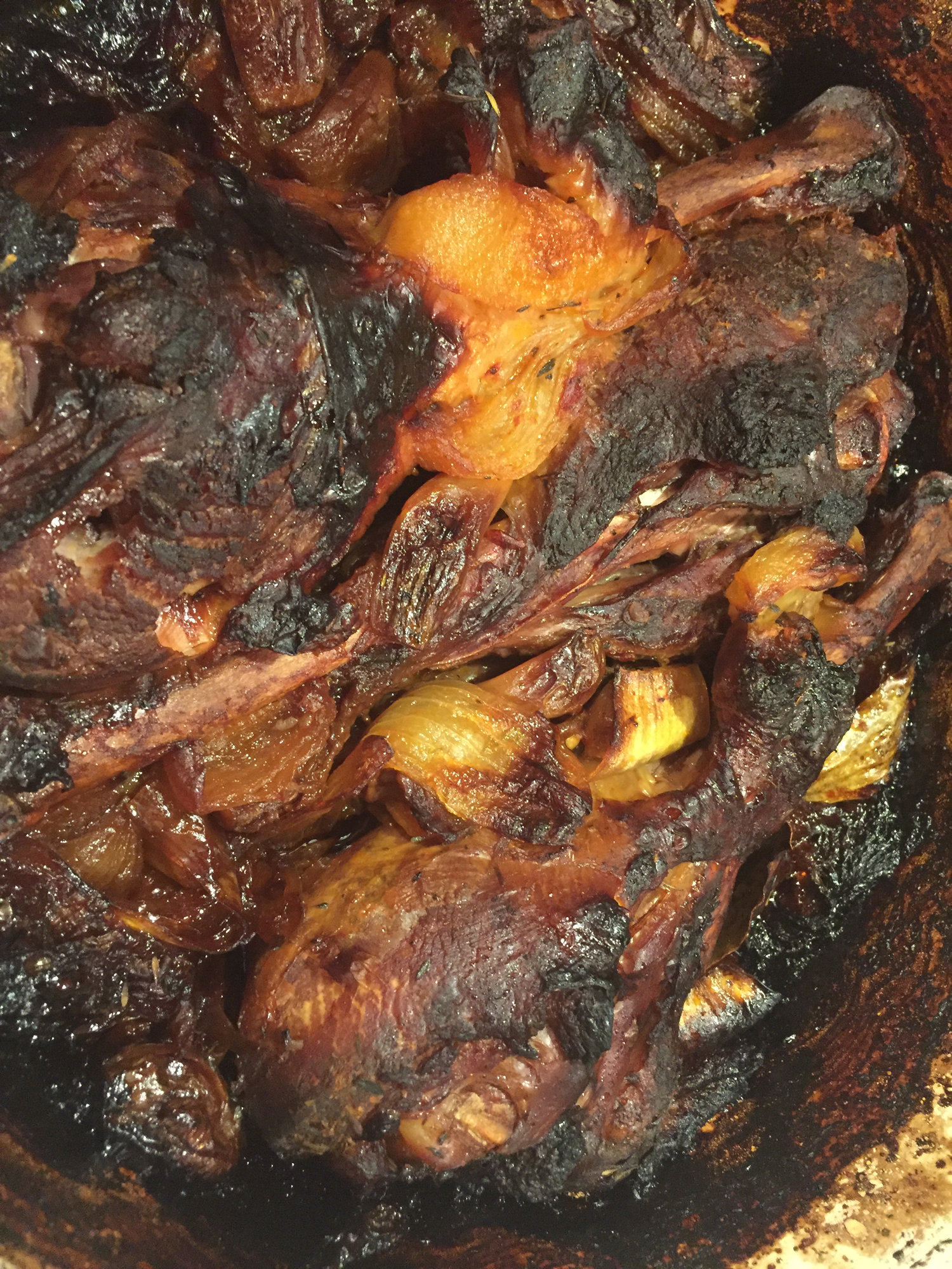 Cool recipe if you want to try something different with turkey. That’s three legs in the pic, a little dark on top, not at all underneath. I needed to pay attention and baste it more.