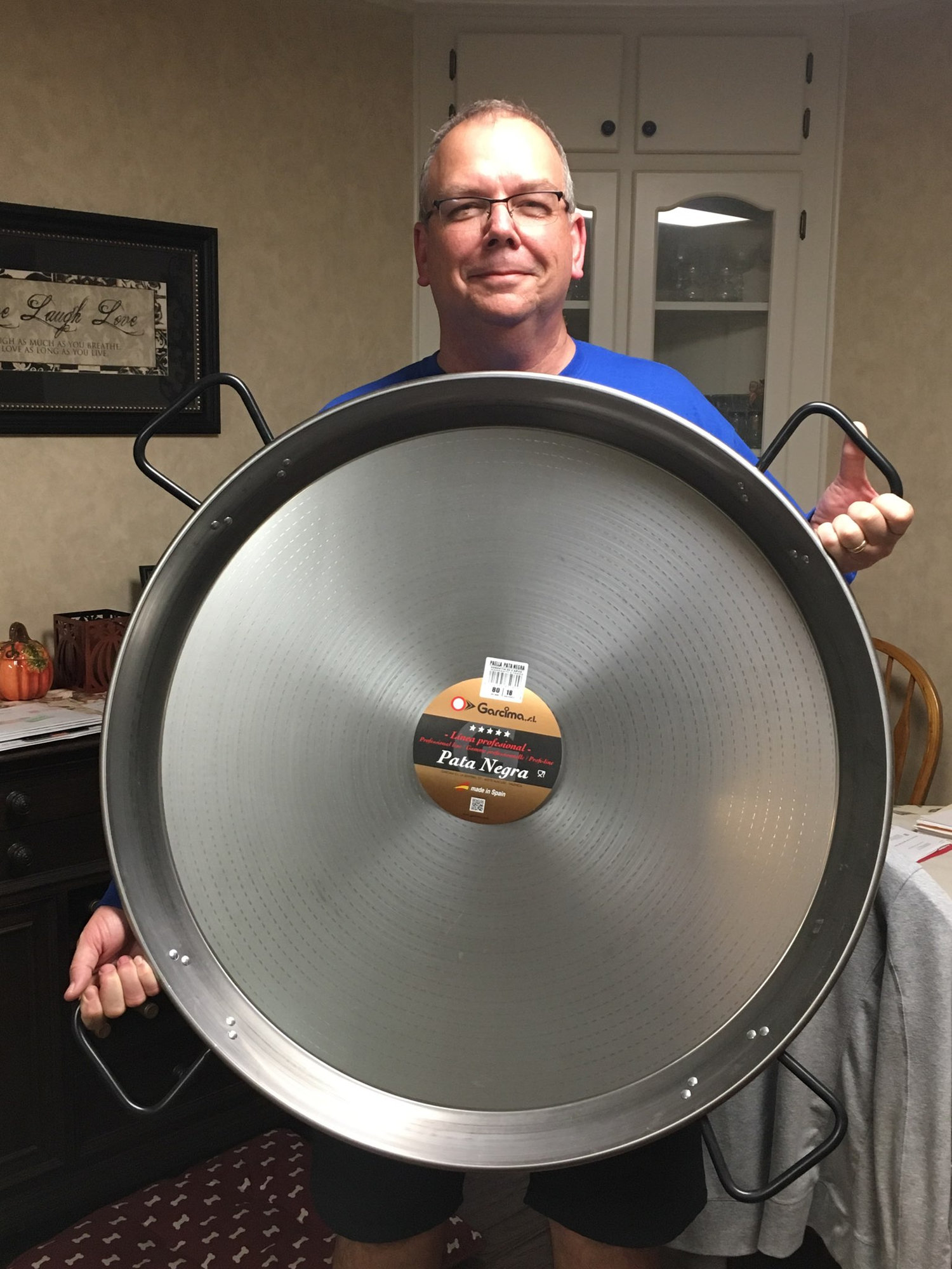 I'm guessing there is a good reason for four handles on that pan.  You are definitely gonna be able to crank out some quality and quantity paella right there.  Enjoy.