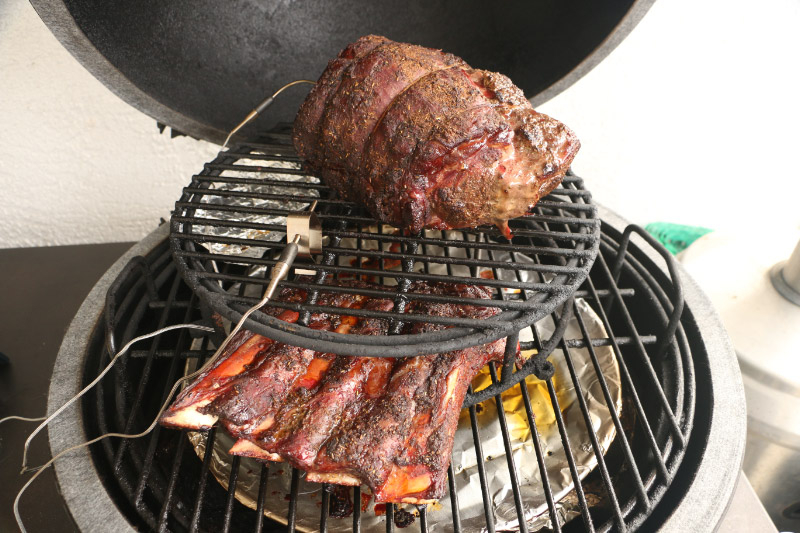 Cooked indirect in the LBGE with a little cherry and oak for smoke until IT hit 120: