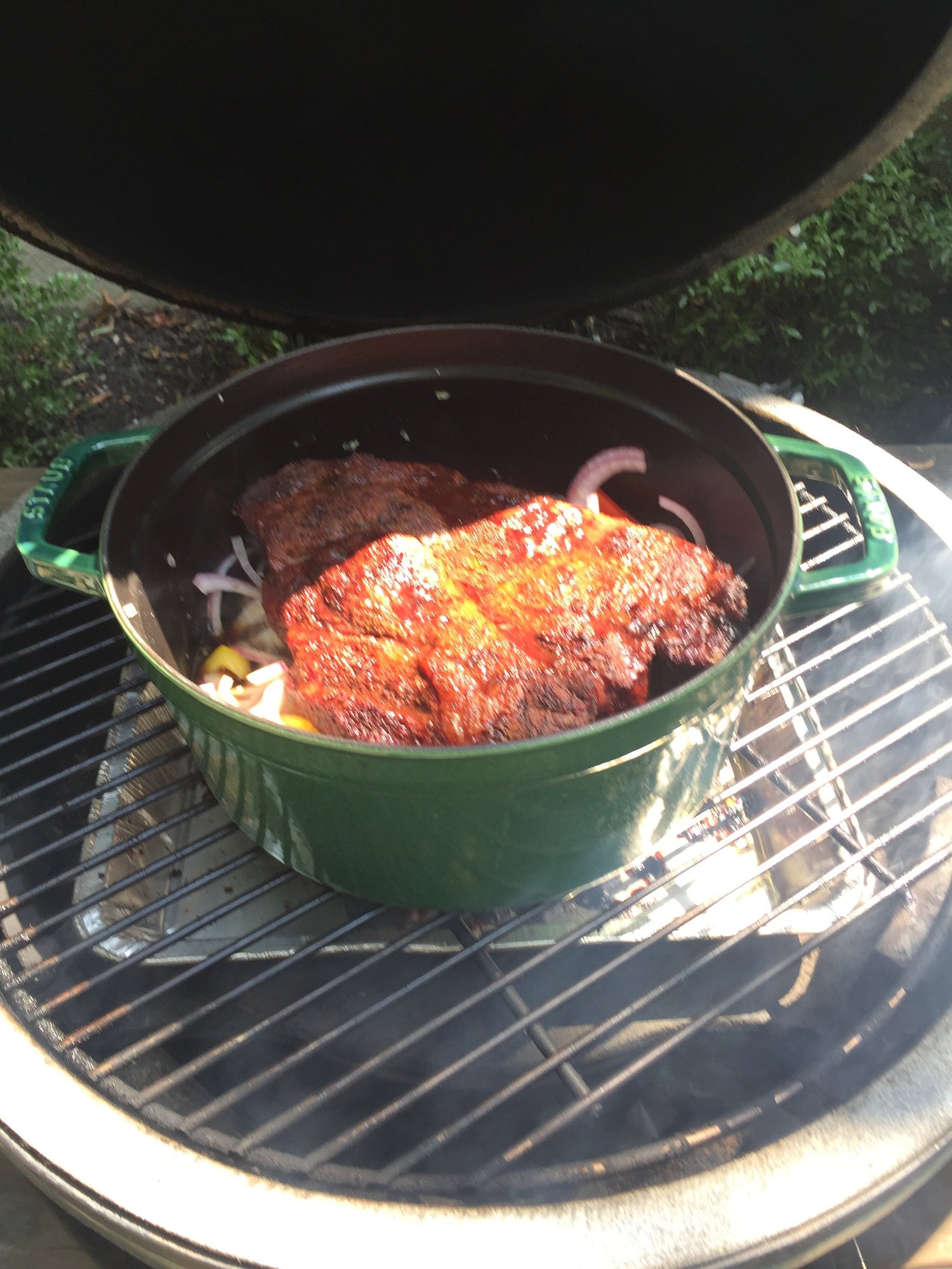I decided after two years I am ready to branch out from grilled chicken, ribs, and pork butts!  I found a Staub 4 quart cocotte on sale for $99 (sur la table), and want to do something that fits the cookware.  What do you recommend for an "easy" first cook?