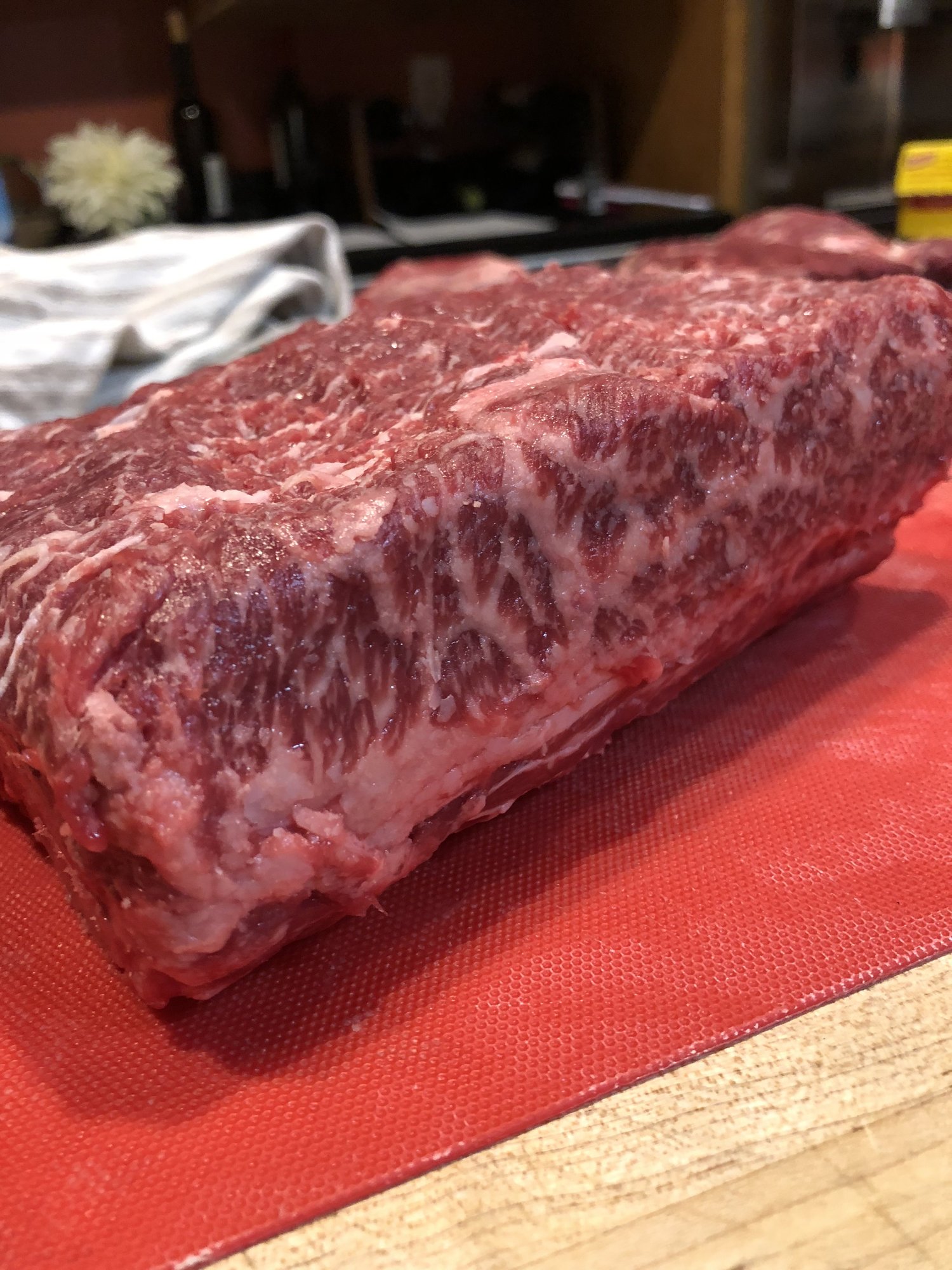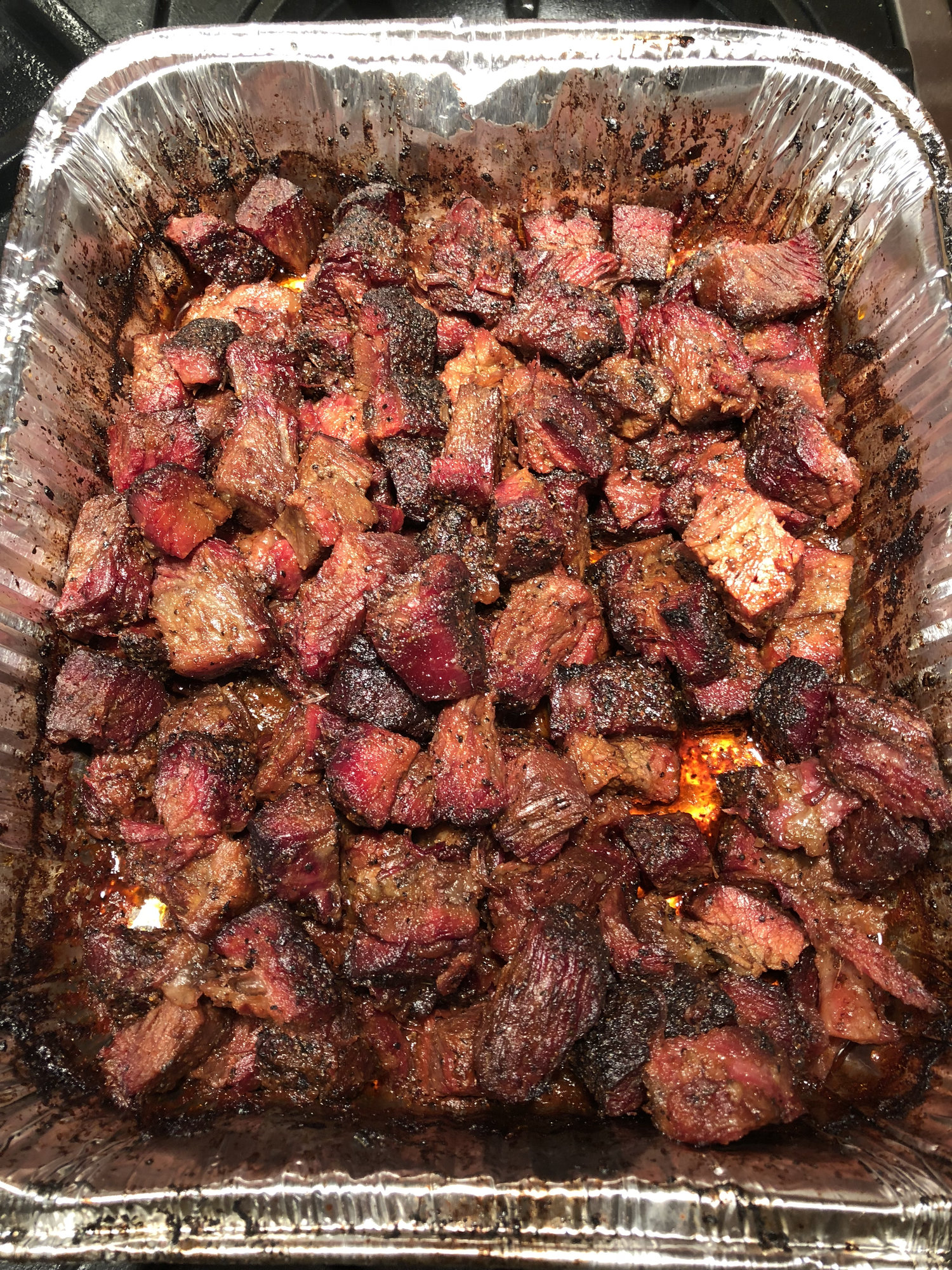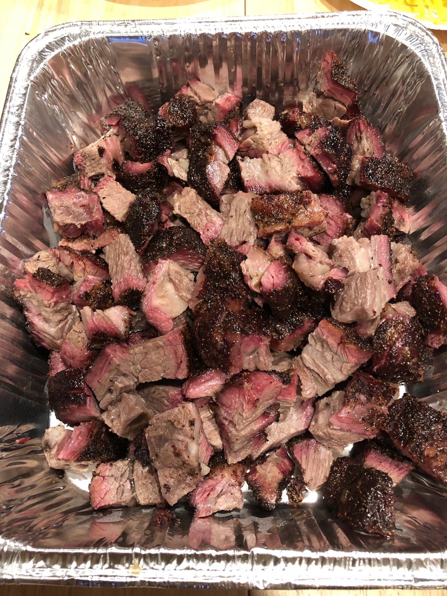 Another non-traditional burnt ends cook....although maybe more traditional than with pork belly. Started with 8lbs Prime plate ribs which were approaching wagyu marbling in places!
