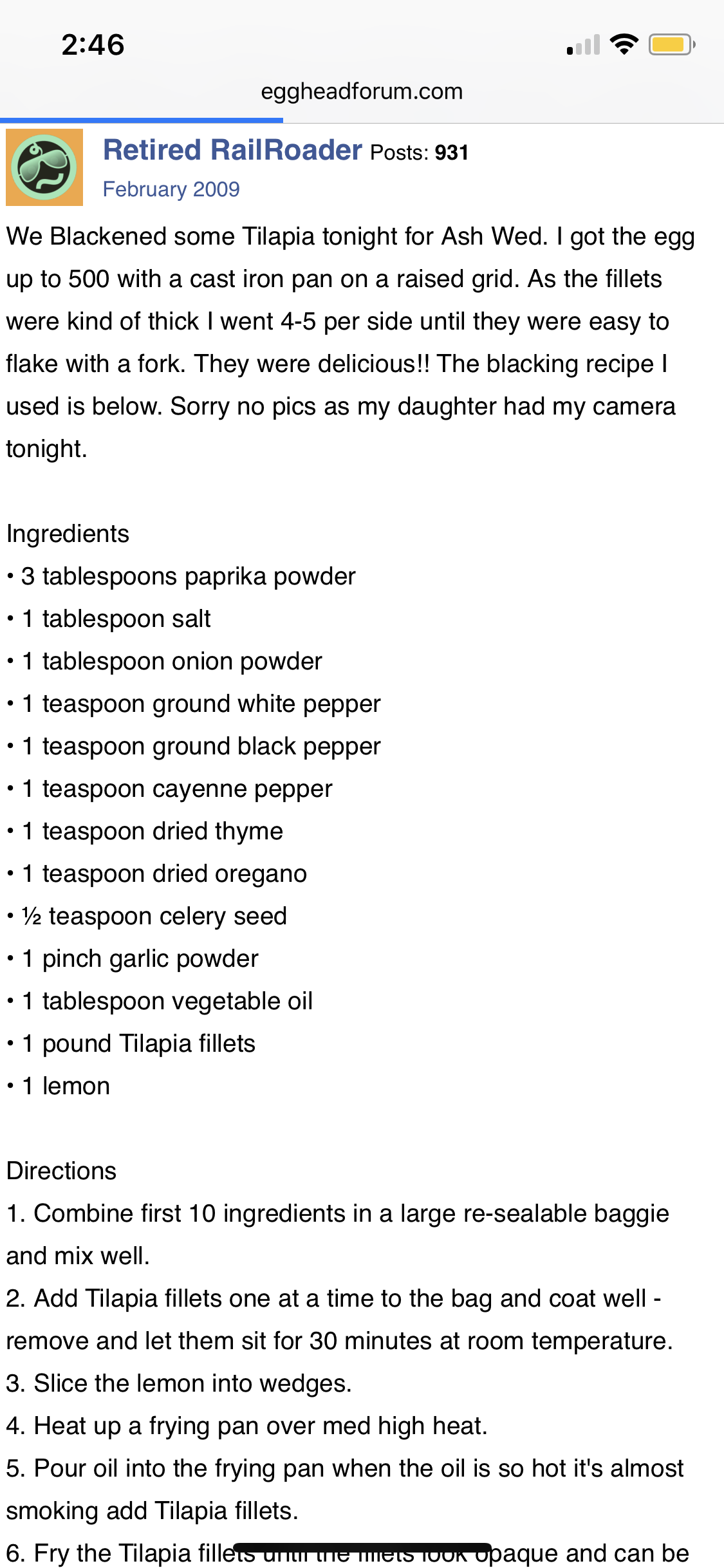 Been using this on fish recently and it’s very good. Courtesy of @Retired RailRoader. Obviously, leave out the last three ingredients if you only want the rub itself.