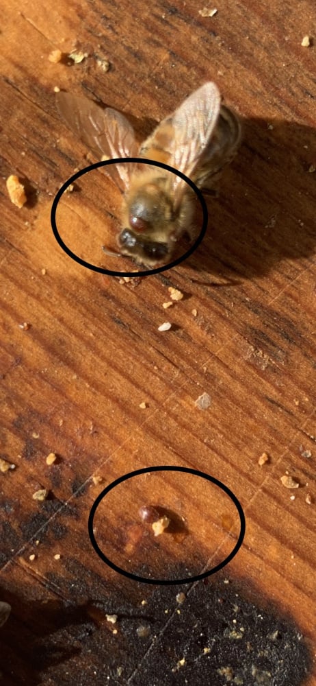 Hey guys, if you have kept bees for more than 3 years you are going to have some losses. Today I was cleaning out a hive and saw some varroa mites I thought I would share the photo so you could identify them in the future. One on the bee and one on the bottom board. Even with treatment they are relentless.