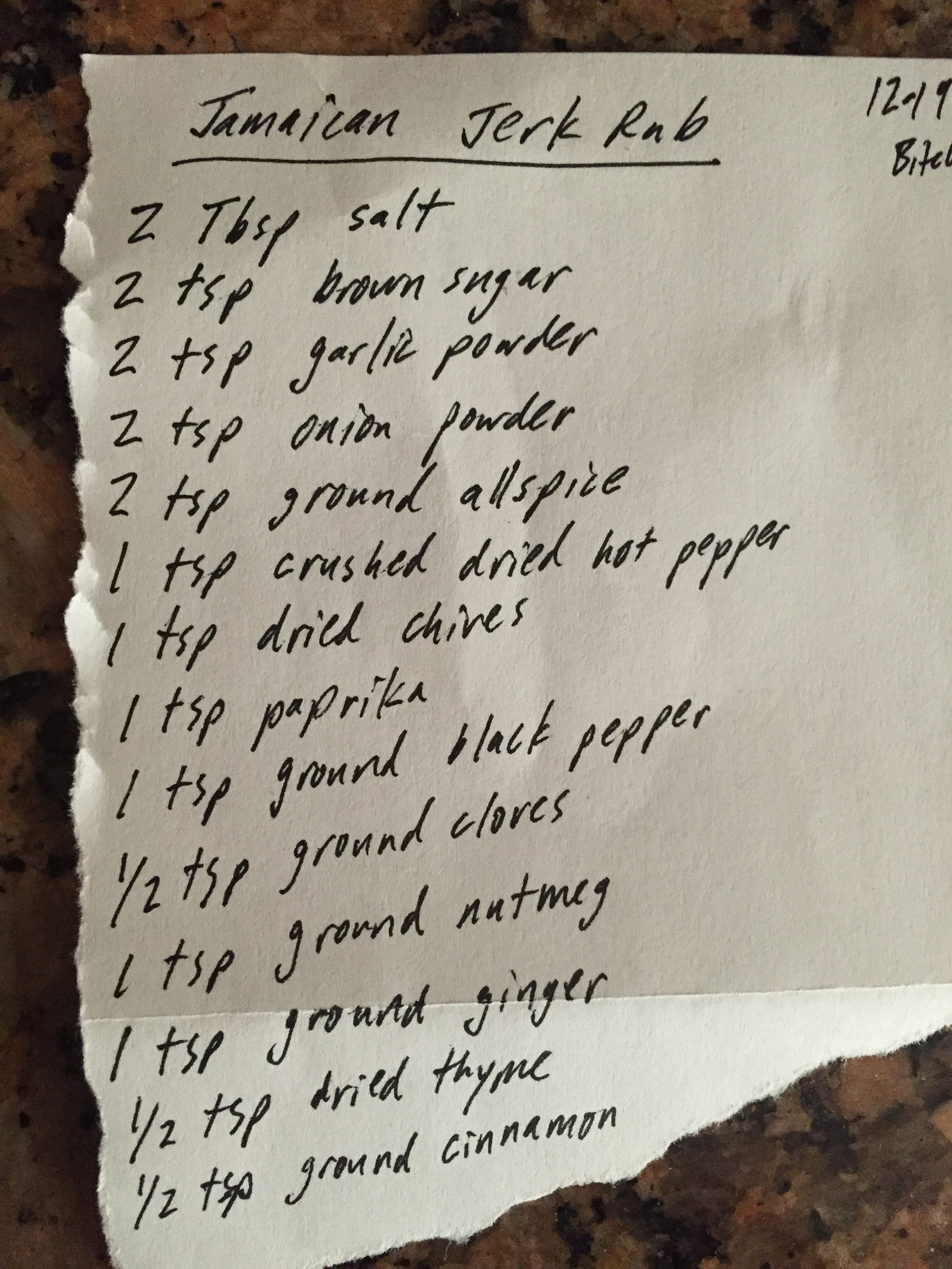 Jerk chicken, from Jamaica, Mon. Easiest way is to buy a jar of Walkerswood Jerk seasoning (actually a paste). It's hot though. Contains Scotch Bonnets. Grace is good too. The WW Mild is VERY mild. Smear it on the chicken (wear gloves!), put the chicken in a zip bag and into the fridge for a couple of hours. 400° direct.