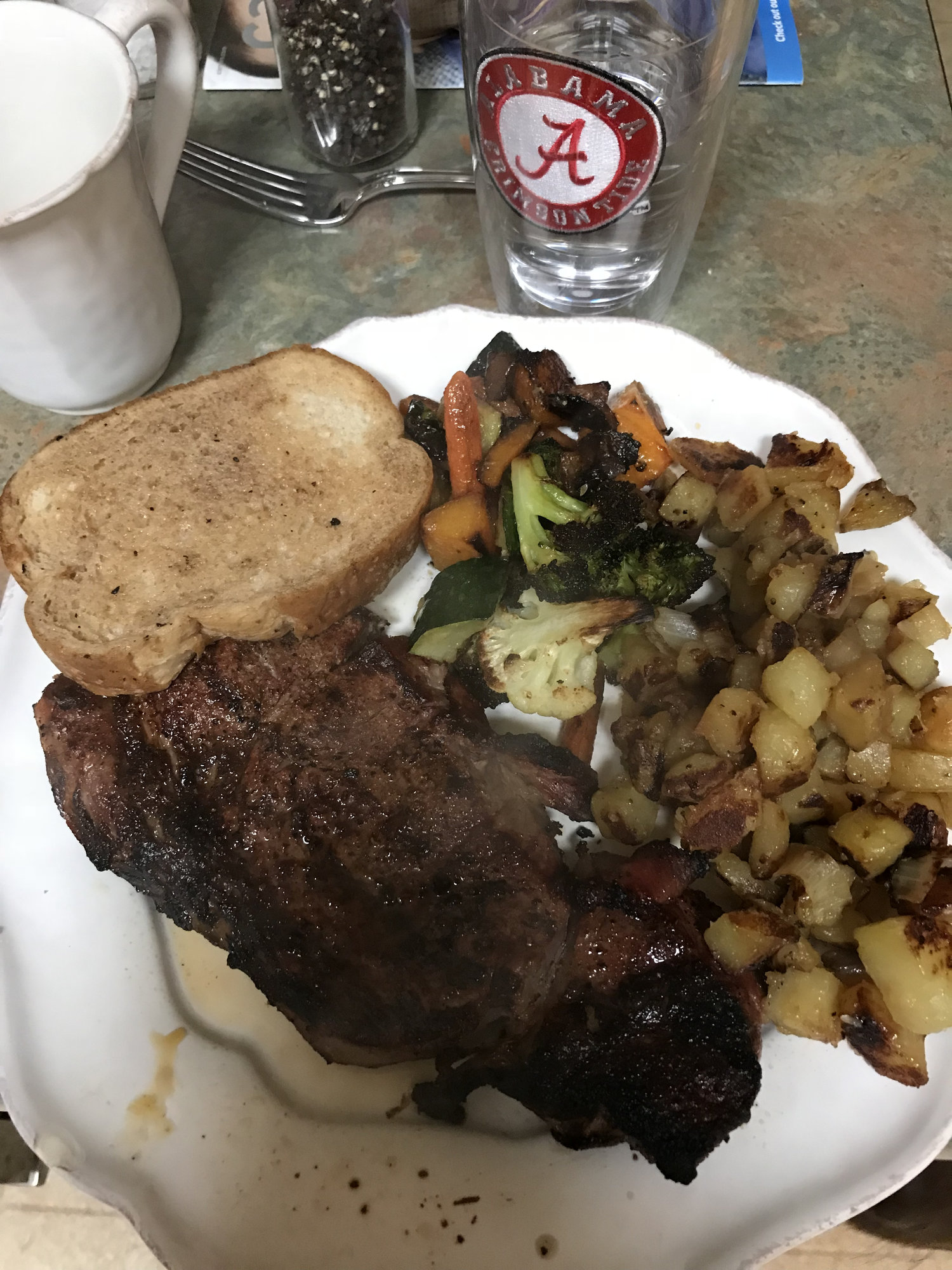 Knew I was cooking 2 ribeyes tonight but the fried potatoes and onions stole the show. It’s been too long. Gotta love sopping with a fresh piece of bread.