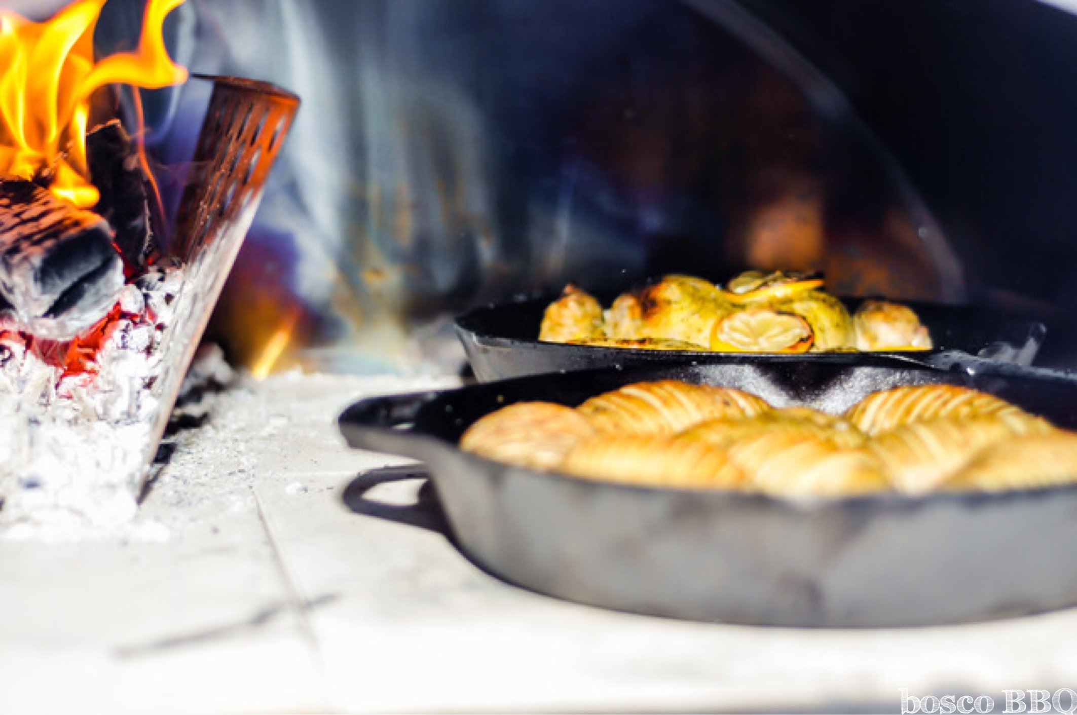 non egg cook sorry I hope this is ok. Fired up my la Piazza wood oven to test out my new lodge skillets out. Made some hassleback potatoes as a side dish.