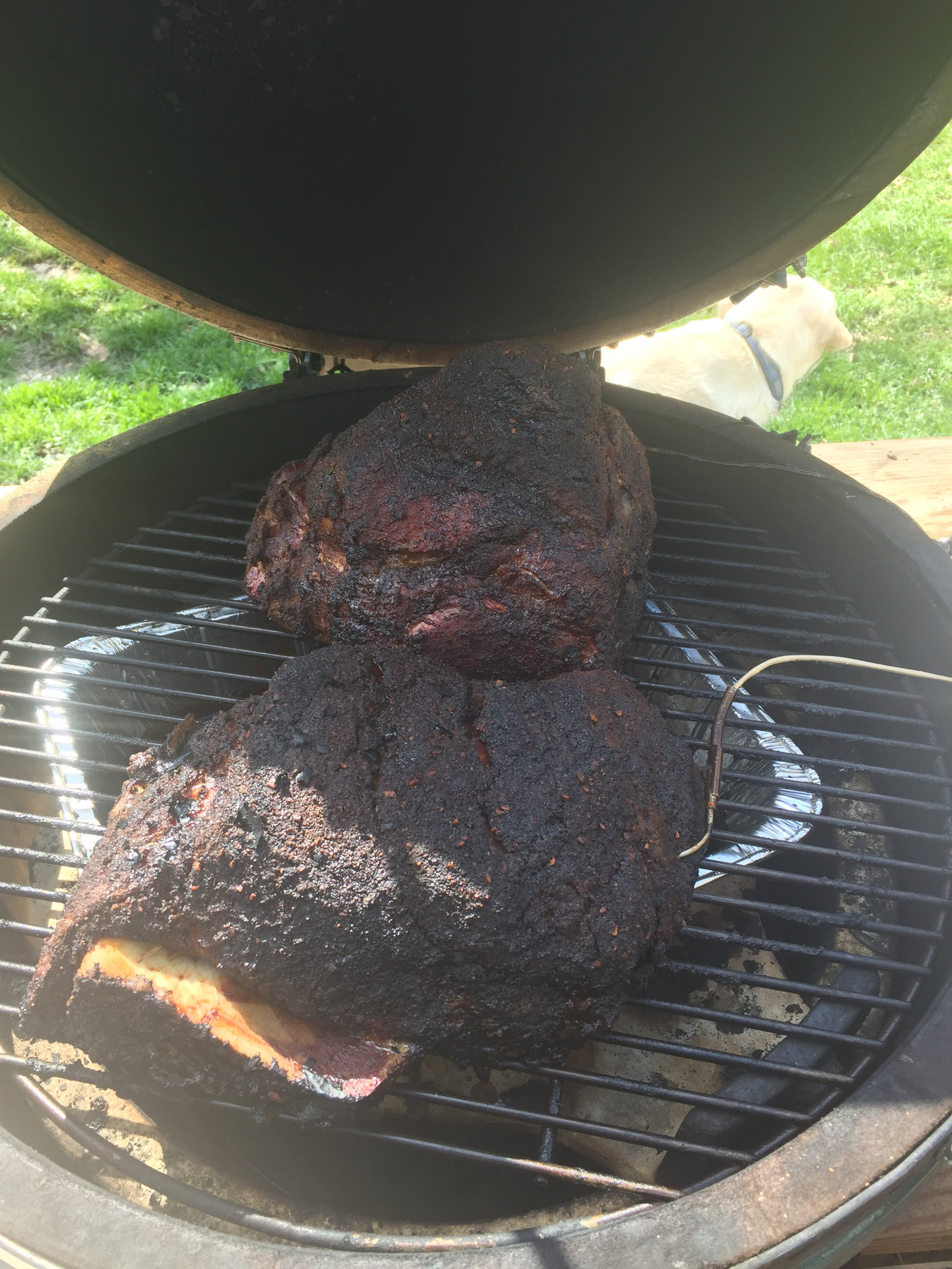 First time doing a whole pork shoulder instead of two Boston Butts to get the right amount of foods. No leftovers!!  Yeah Baby!!  Da Bark!!