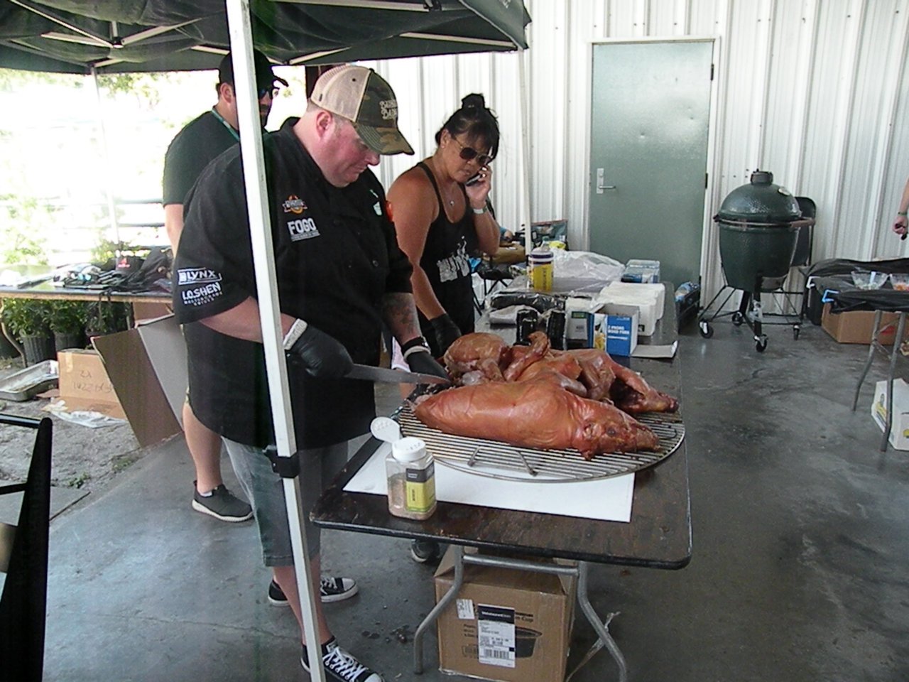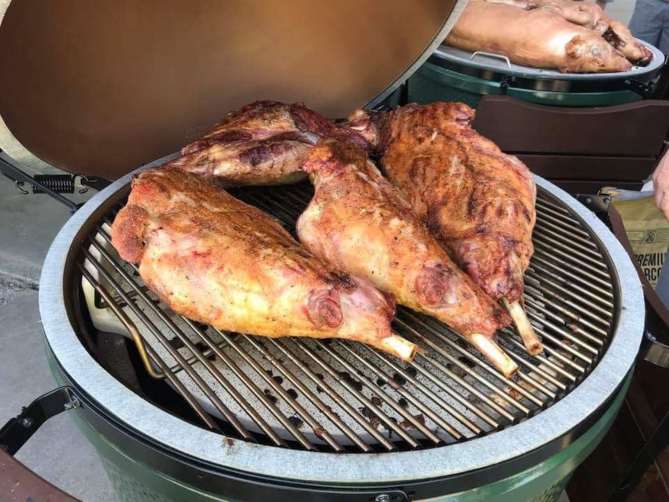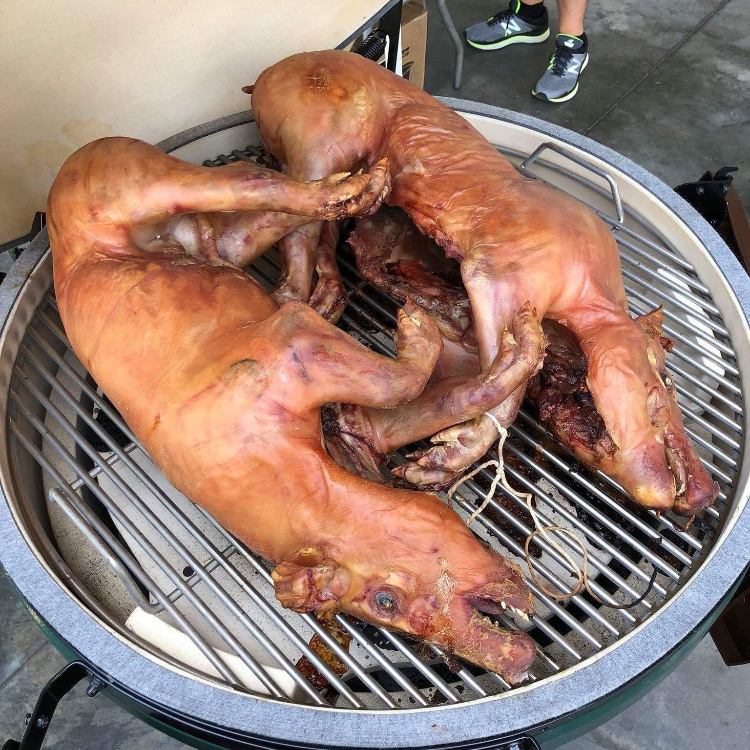 After cooking a full prime rib dinner for 400 Friday night with an amazing team, I fired up three XXL eggs and two XLs for two 25 lb hogs, four legs of lamb, one 65lb steamship round of beef and three Cheshire Farms Porchettas.