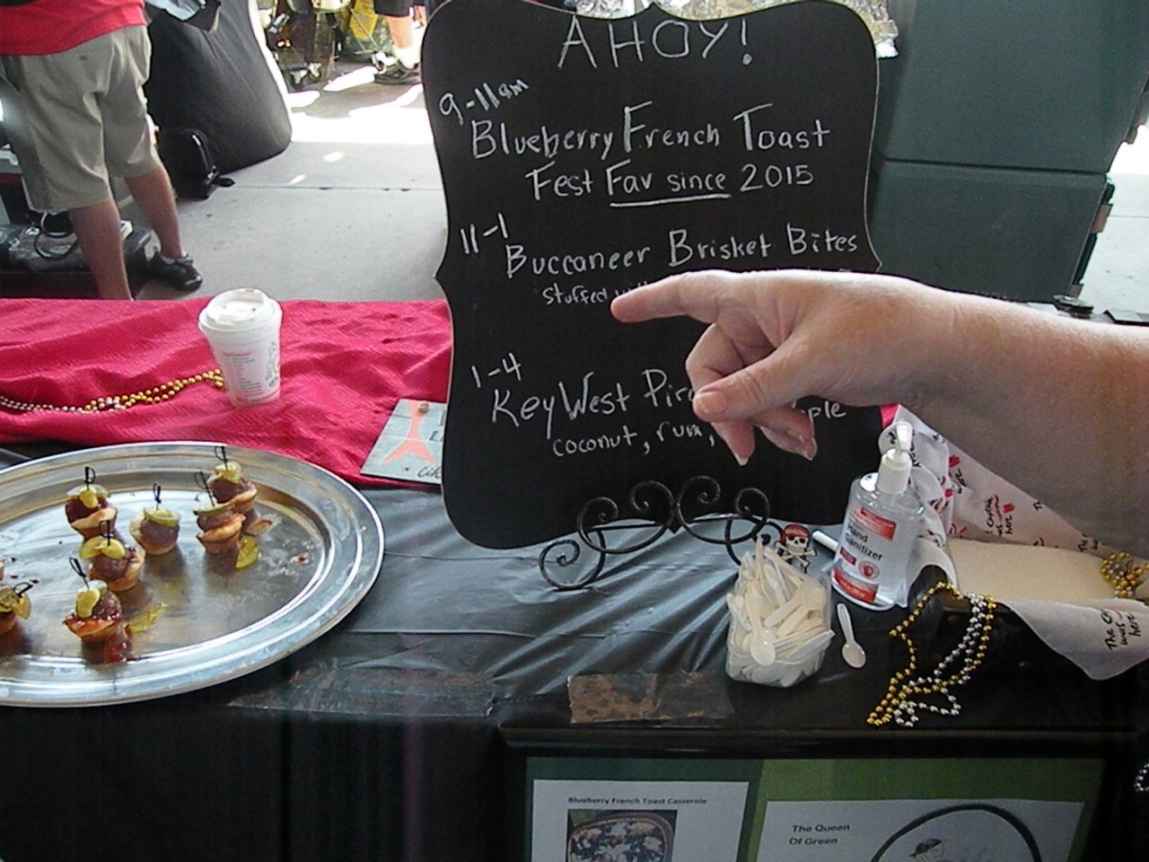 Had her Blueberry French toast every year and this Buccaneer Brisket bite was full of flavor. Love seeing her every year, her team rocks the food. Couldn't do her third offering - can't abide coconut but two out of three ain't bad.