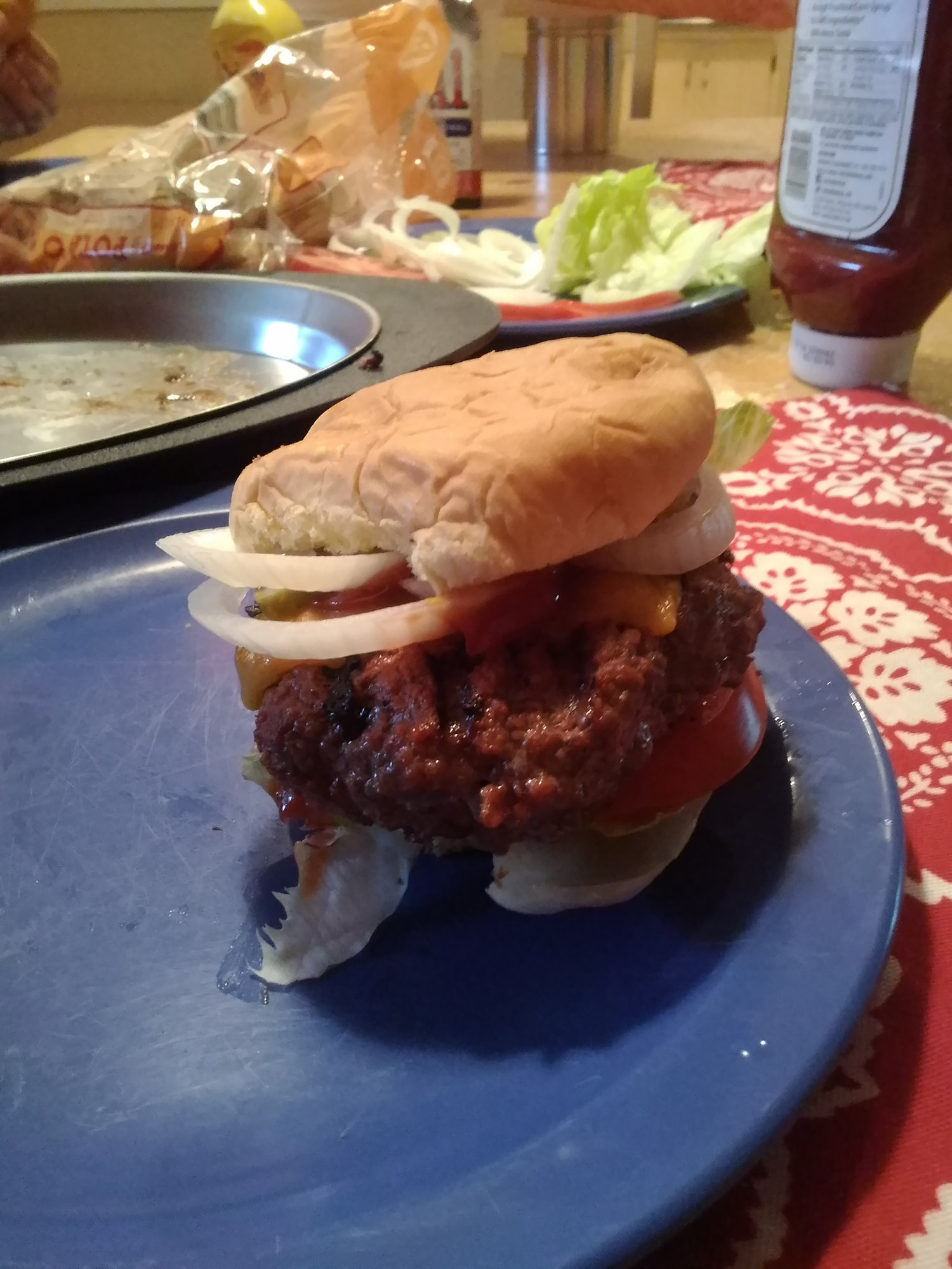 It looks great. Interesting set up with the burgers with CI grid and plate setter. Do you keep the plate setter in the entire time? I imagine this helps with the grease dripping on the coals and flair ups.