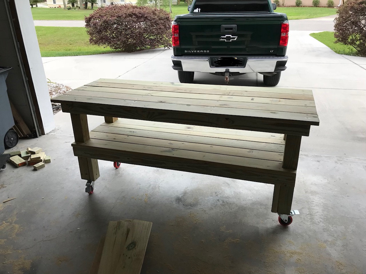 Recently built a table for my large and MM. It was surprisingly a lot easier than I expected and came out nice. Spent $180 total including casters ($10 each), wood, and screws.