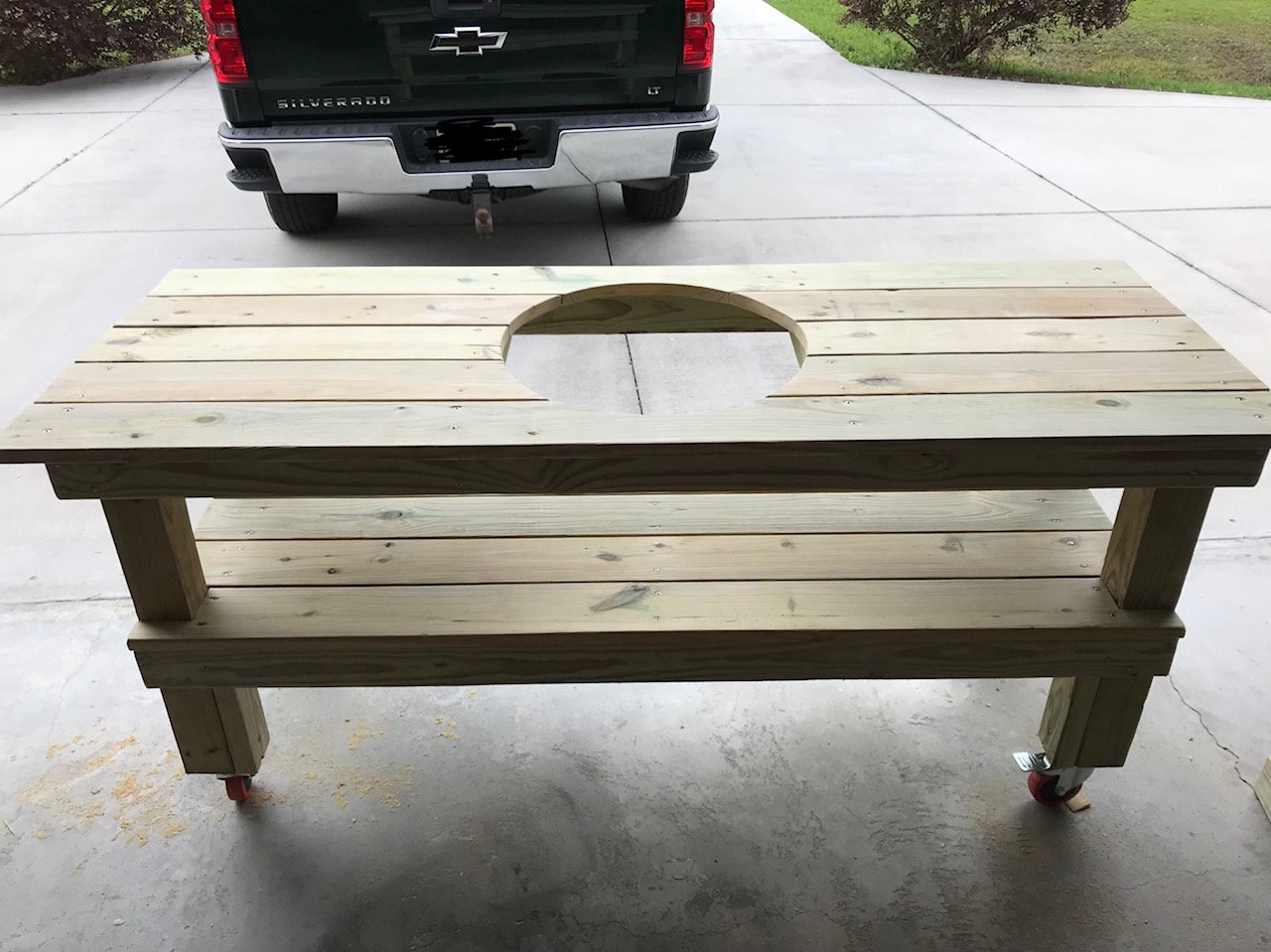 Also did a table for an XL. Same design except we cut the whole on the side instead of the middle.