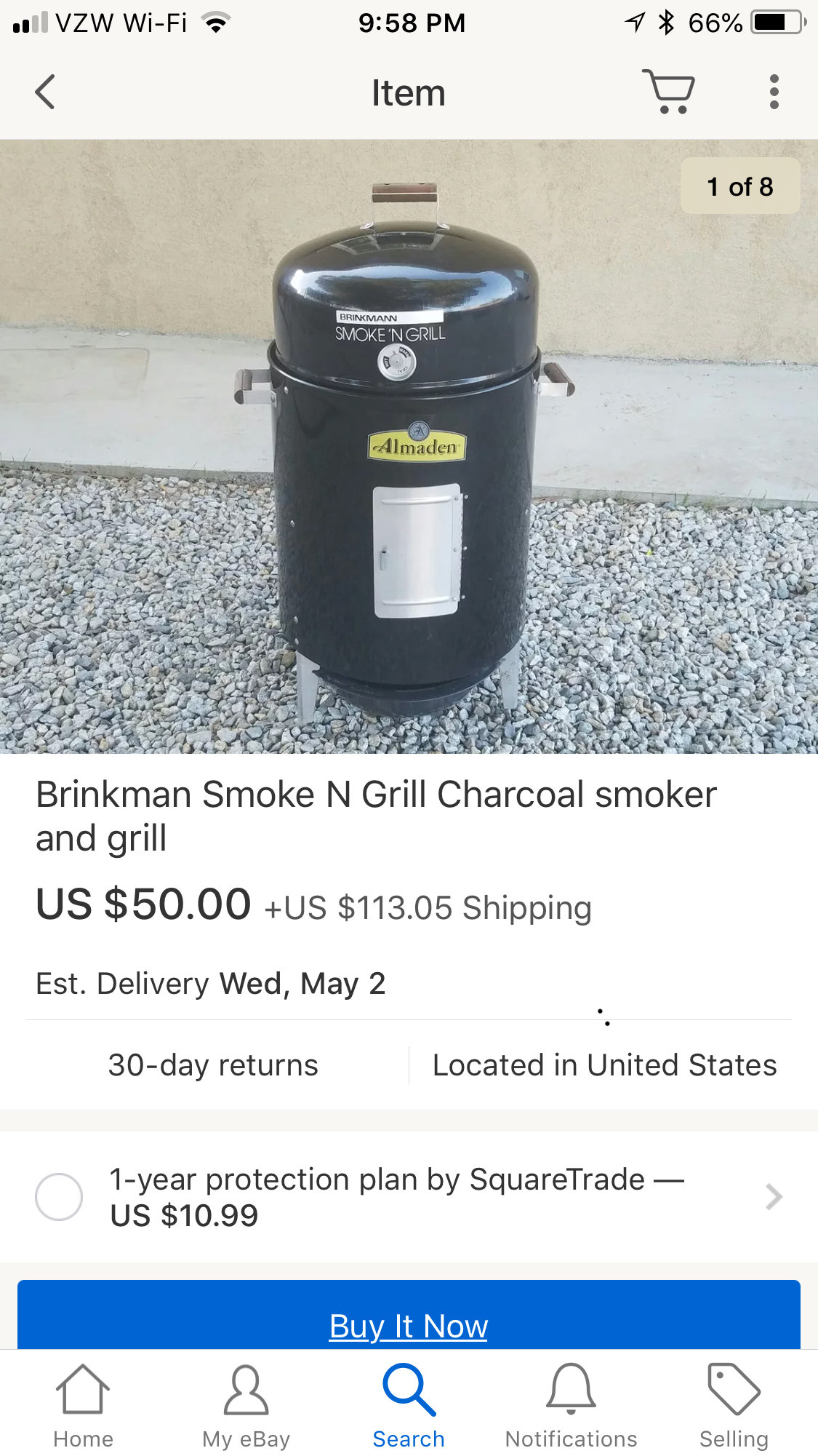 Anyone looking to upgrade from BGE to a Brinkman? I just stumbled across this sweet deal on eBay. This was the first model of smoker I ever bought. I picked it up in person at Home Depot for $50 and thereby avoided the $113.05 shipping fees listed here! The first thing I ever cooked on it was a 4lb. corned beef brisket. I had no idea what I was doing and I don’t think the dog would have eaten that corned beef.