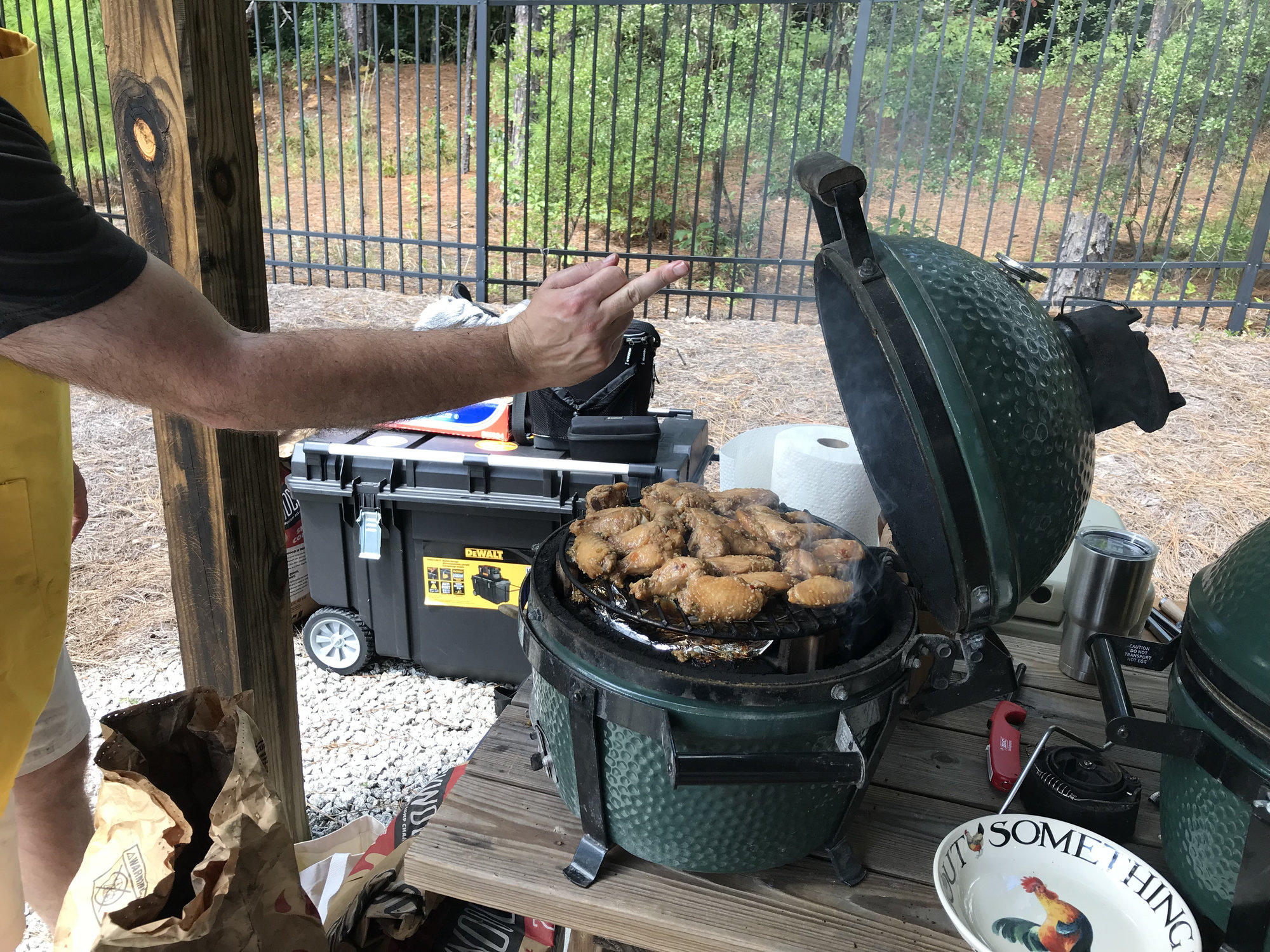 Fixing to cut the boys @ss with some wing cookin they ain’t never seen before. Home made sauce and all.Ellijay GA with a Medium & MiniMax