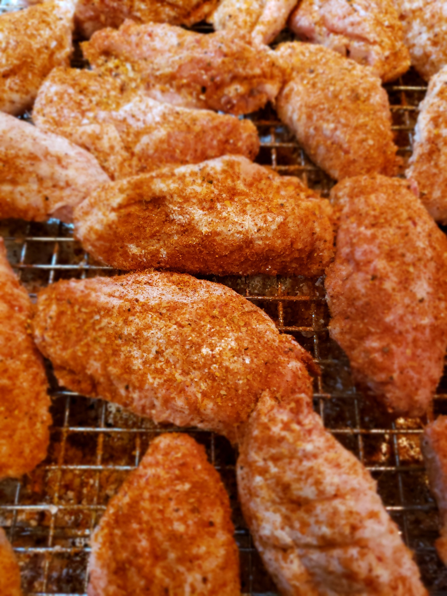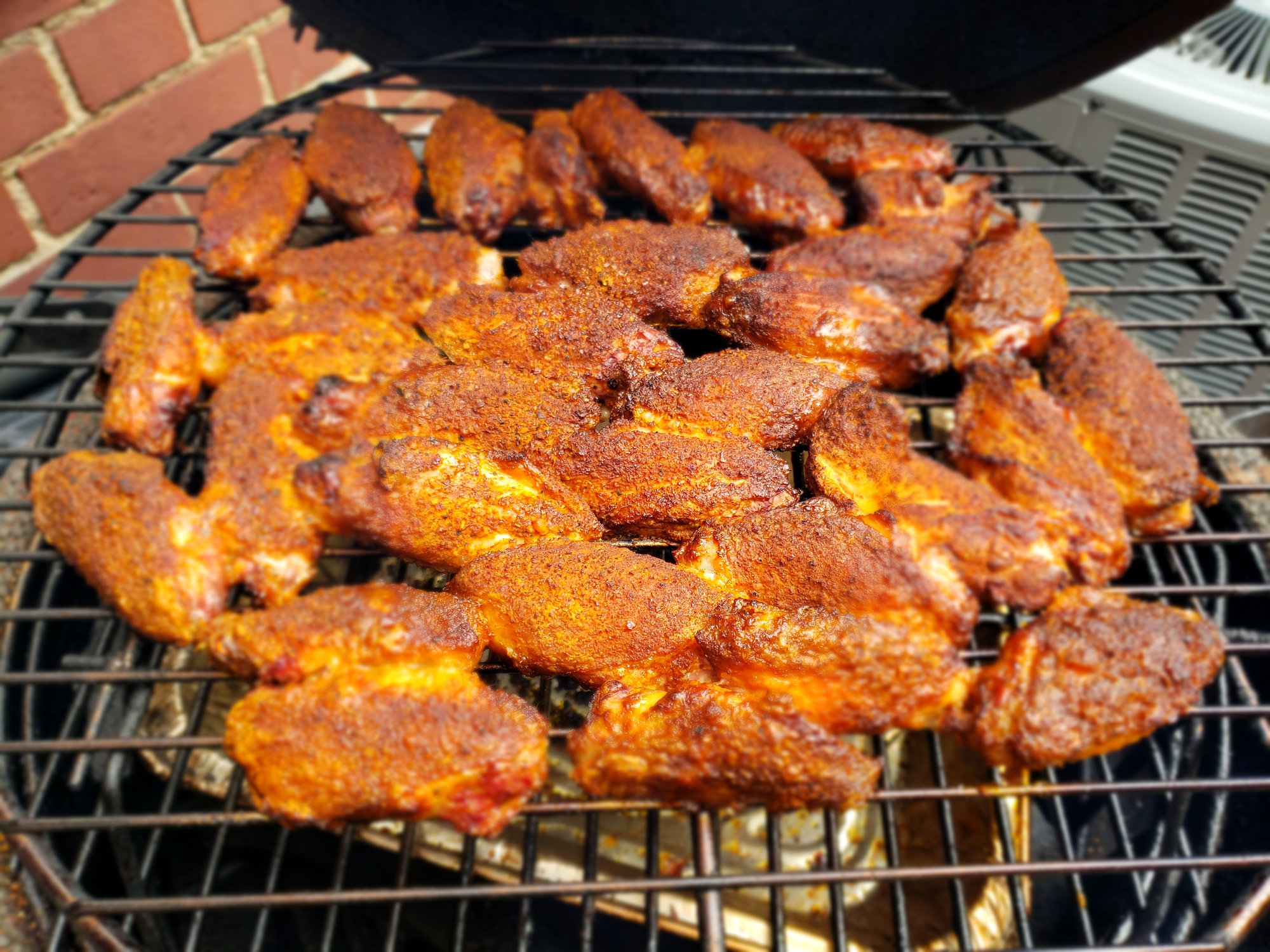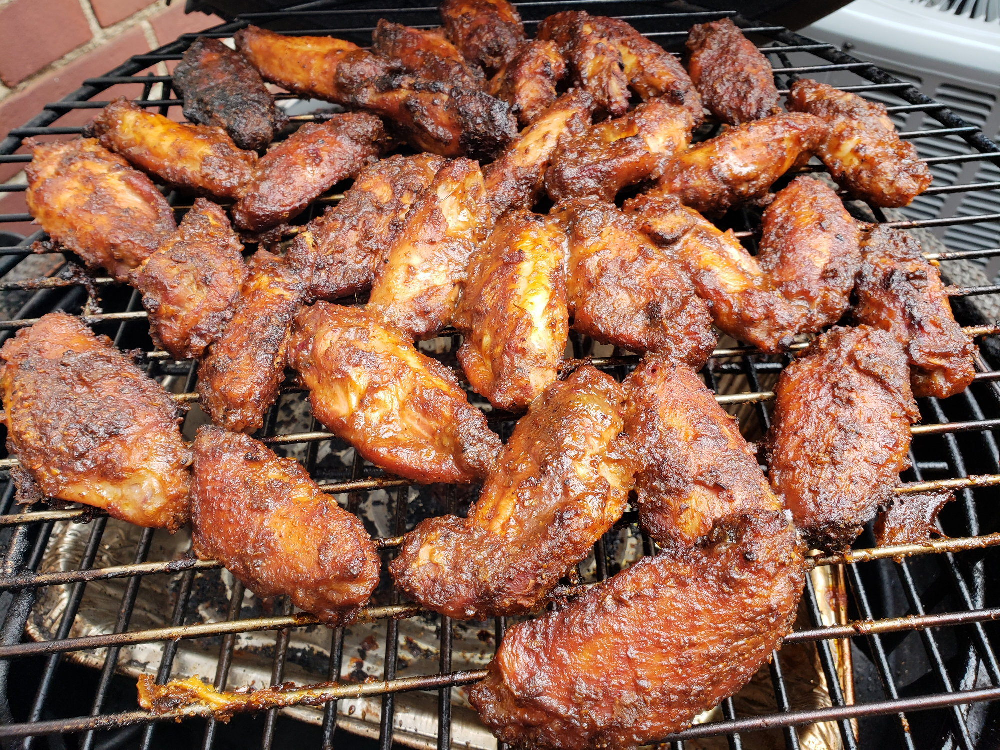 Decided to make some wings last night.  Cornstarched them in the fridge for a while, then used a rub that was mostly a basic homemade rub, but with the last bit of some Raging River and some Jamaican Firewalk.  Smoked with apple for a couple of hours at 200, then raised the temp to about 350 and glazed with tamarind sauce.  Very tasty!