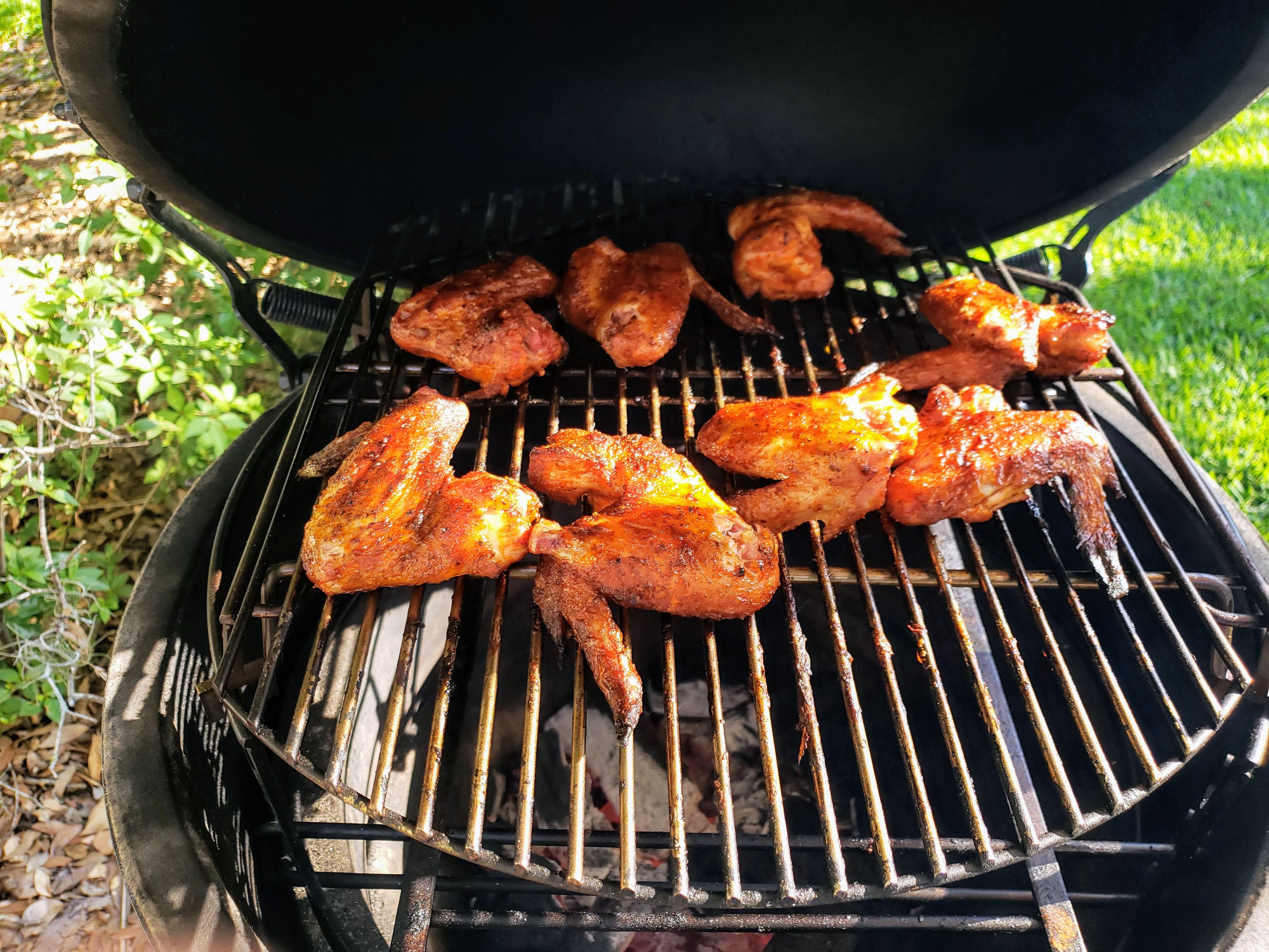 Needed to cook off some wings, Boneless Skinless thighs, and some ribs that I had. Ribs and thighs were done in the Mini Max and the wings done in the Large. Wings were 325-350 indirect for 30-20 then indirect for 15, ribs were 250 for 5 hours and thighs done at 275 for close to an hour. This was my first cook on the Mini Max and, especially reading on this forum about how hard it is to keep low temps, had no issues keeping 250 +/- a few. Loving the max!!!