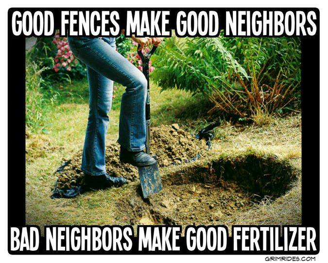 I was going to save my first post for the green egg table I am building, however, this seems like an opportune time to comment. Go to the store, buy concentrated round up. Grab your drill and a 1/2 inch drill bit. Also, pick up night vision goggles, because you don't want to do this while your neighbor was watching.