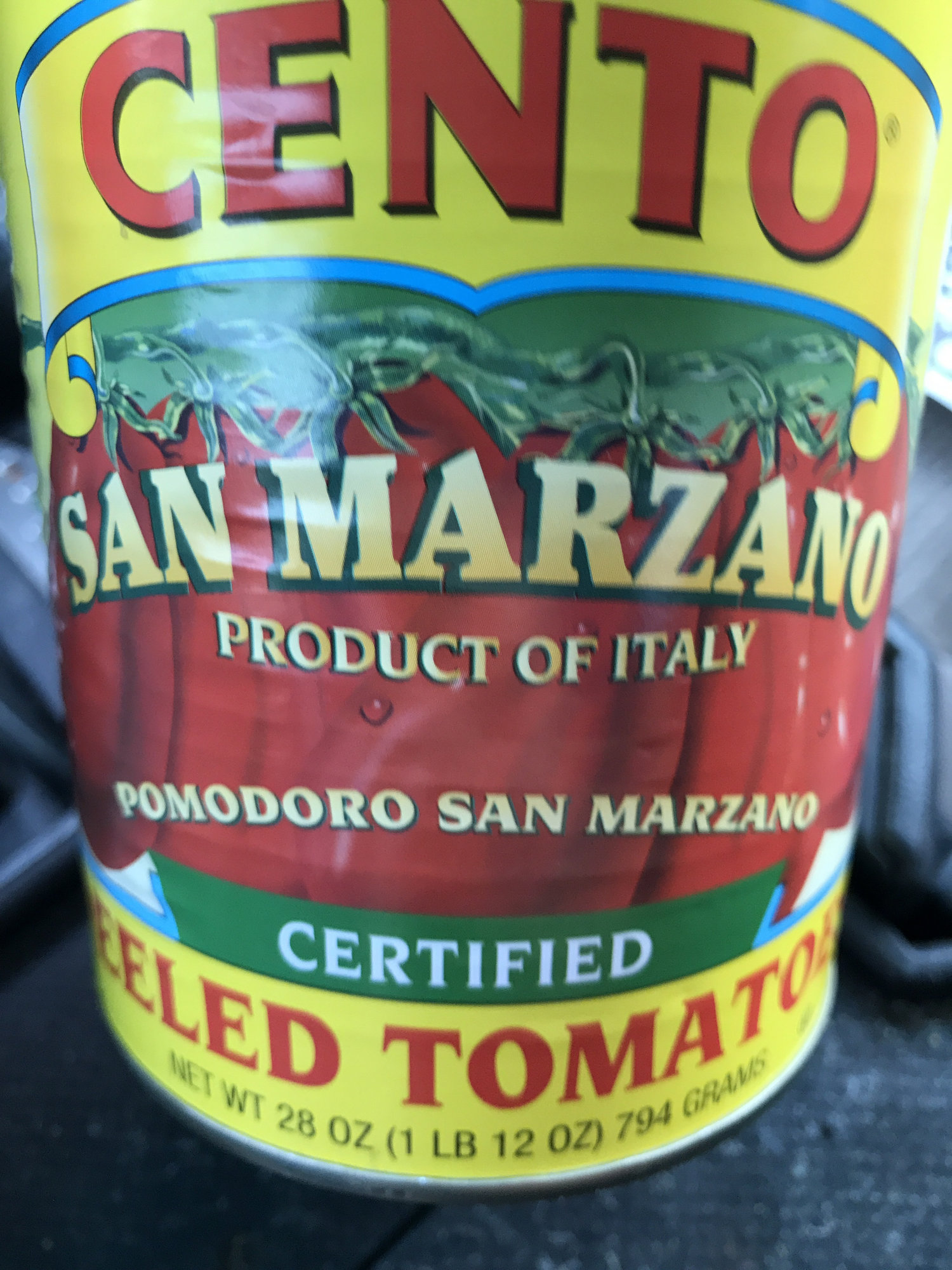 A can of San Marzano 'maters crushed with a little olive oil and garlic