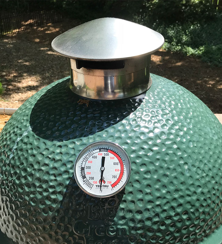 So I now have two brand-new Tel-Tru thermometers in my Medium and Large Eggs (and they tested fine), and they're 3" diameter, now, so I can tell at least roughly where the temperature is by looking out the window!