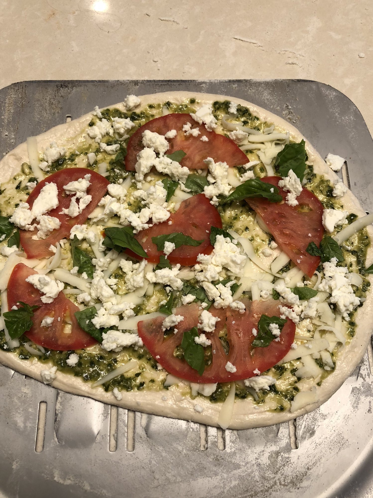 This dough was made from hierloom grains that we milled and added to our starter. We grew the tomato, basil, made the pesto from the garden and...wait for it...TFJ made the cheese too. Creamy style feta and it was out of this world. The only thing we didn’t make or grow were the wheat berries we bought to mill for the flour. The fresh flavors were incredible.
